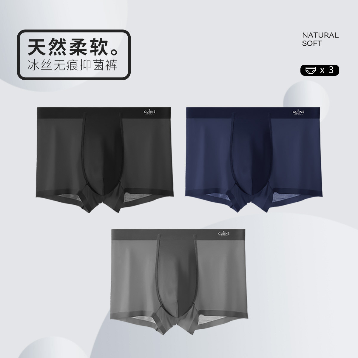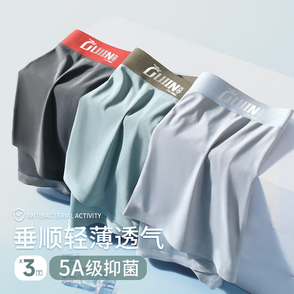 【5A抑菌裆】3条装男士冰丝内裤无痕透气夏季薄款平角四角短裤 111386
