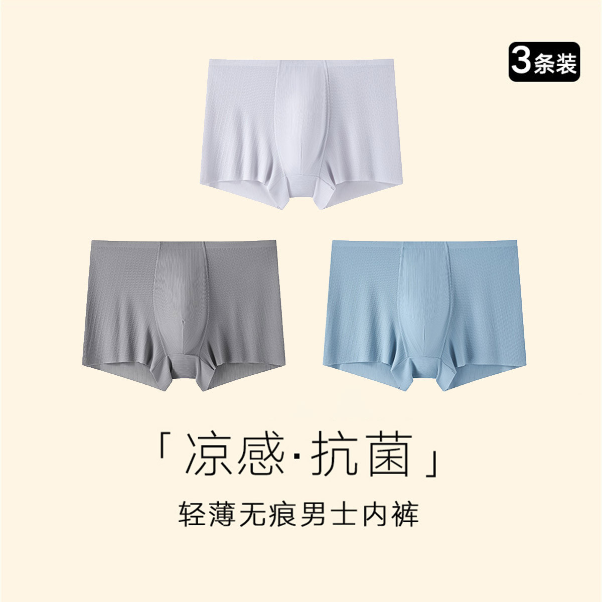 【冰丝凉感 7A抑菌消臭】3条装夏季男士超薄无痕内裤平角短裤 257434