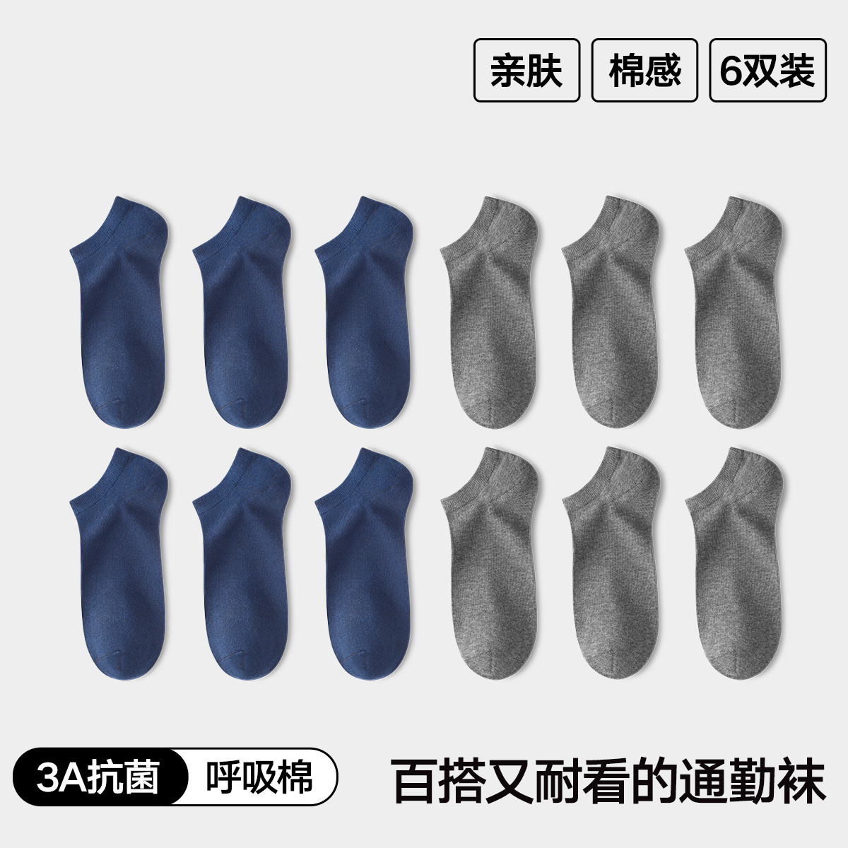 【3A抑菌 绵柔透气】6双装男士短袜夏季商务休闲袜子短筒船袜 981146