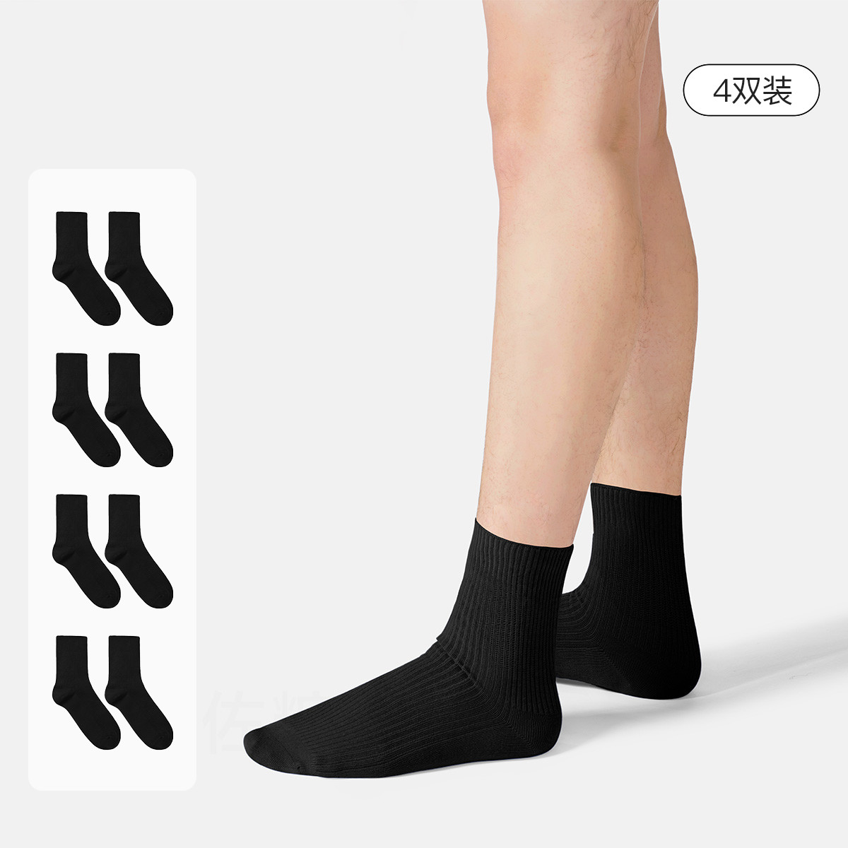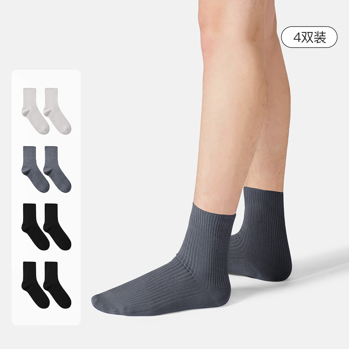 【高弹透气】4双装男士中筒袜罗纹莱卡纯色百搭防臭耐穿亲肤袜子 455744