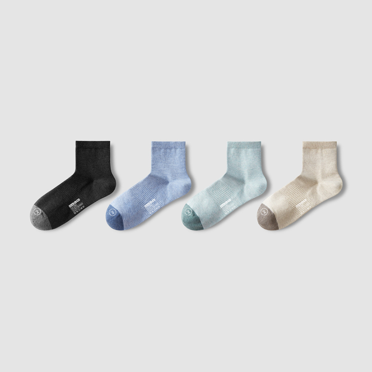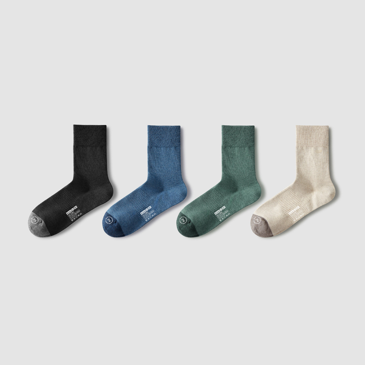 【高弹透气】4双装男士中筒袜罗纹莱卡纯色百搭防臭耐穿亲肤袜子 508992
