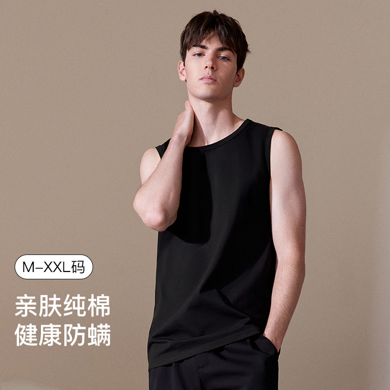 【100%纯棉】男士圆领宽肩背心透气亲肤可外穿打底内衣宽肩带 562688