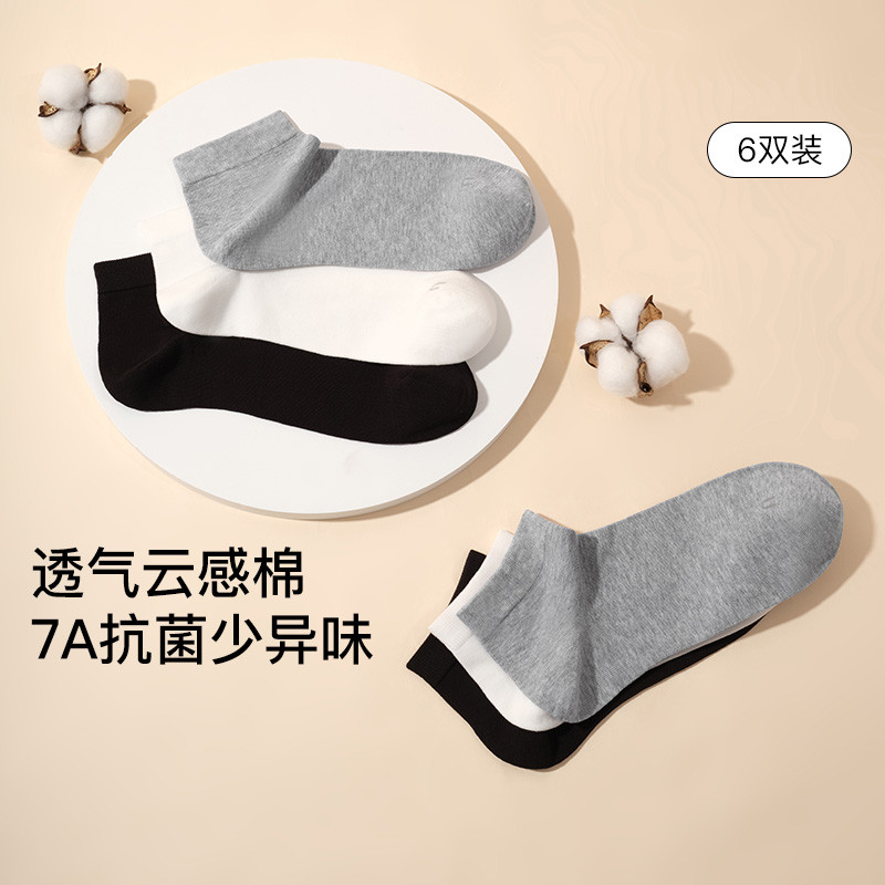 【7A抗菌】6双装防臭透气短袜耐磨不起球薄款袜子男款夏季 761024