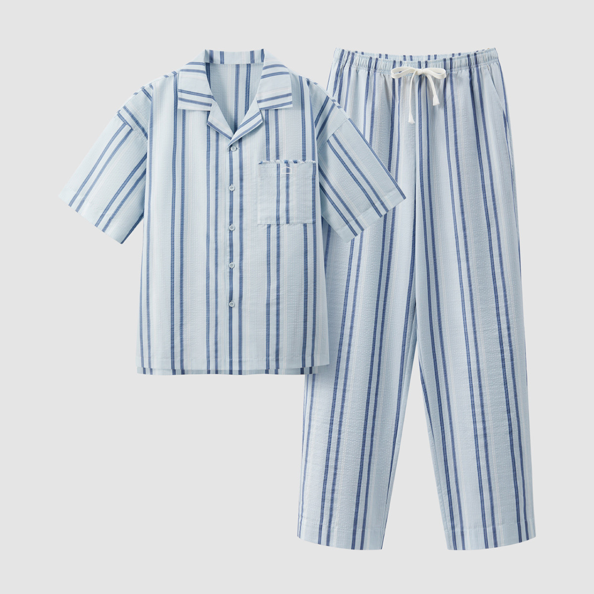 棉棉301H柔软家居服男款睡衣春夏情侣家居服套装翻领圆领可选 356933