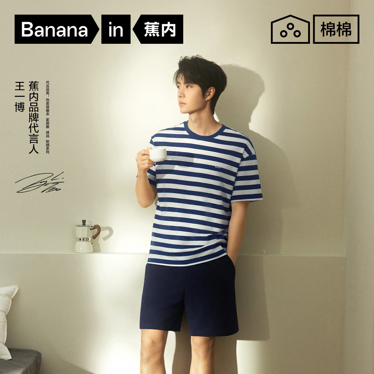 【明星同款】305H纯棉睡衣男春夏款短袖短裤亲肤情侣家居 392261