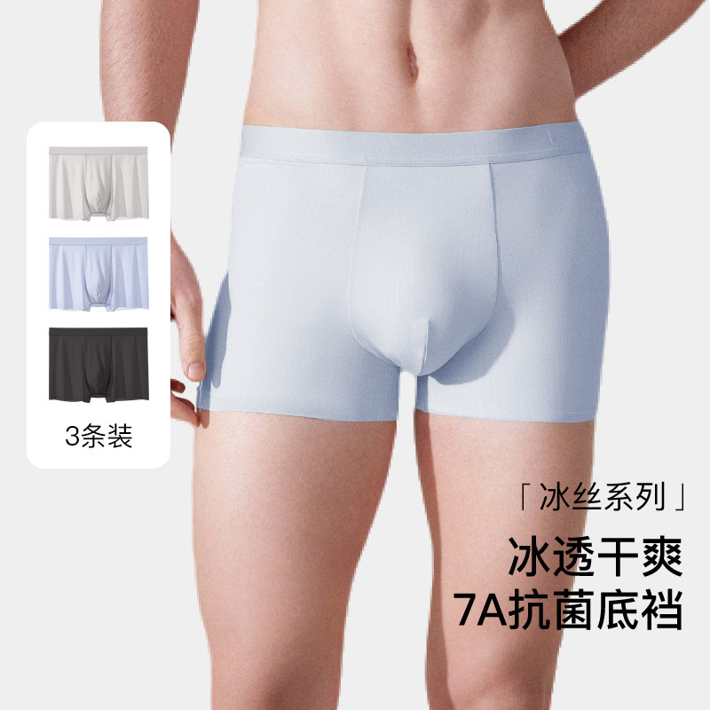 【7A抗菌底档】冰丝透气男士中腰四角裤平角内裤夏季薄款3条装 578752