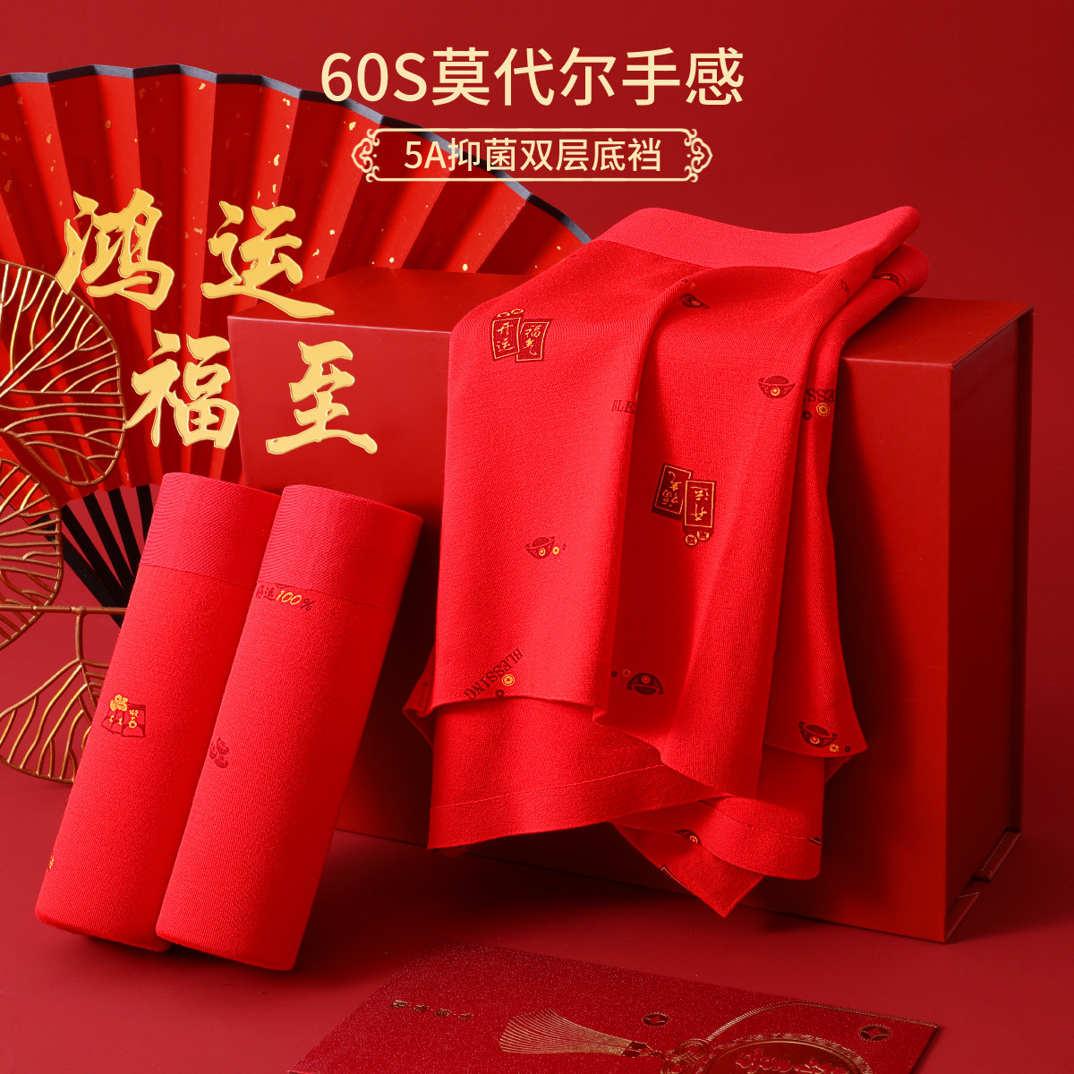 【3条装5A抑菌大红色】内裤男鸿运结婚喜庆典大码透气男士内裤 134110