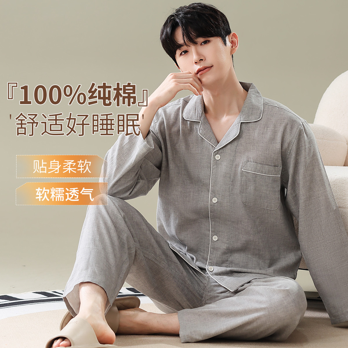 【柔软亲肤】春秋男士睡衣男长袖休闲家居服套装高级感可外穿男款 968218