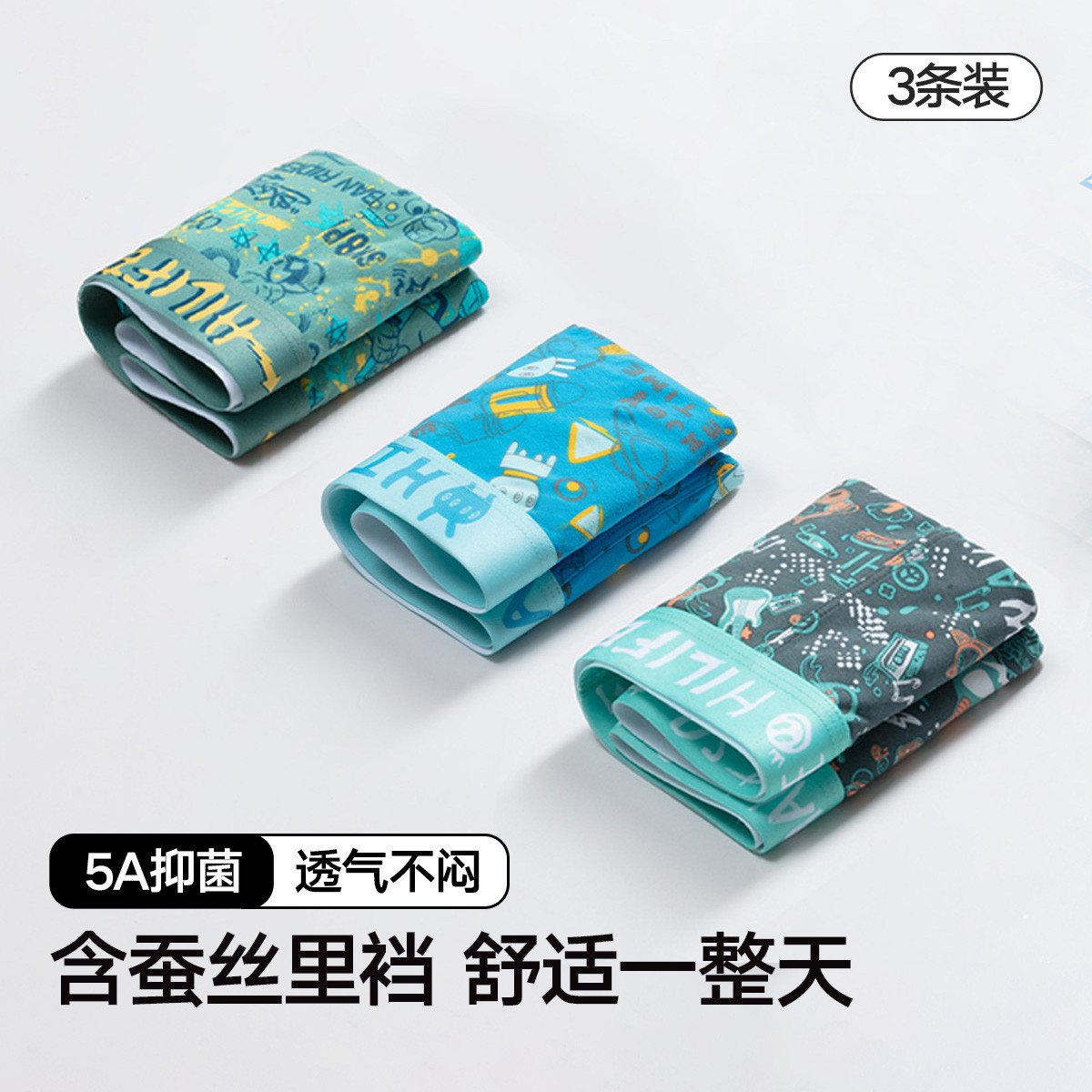 【含桑蚕丝 5A抑菌档】3条装男士内裤平角卡通印花可爱四角裤 856538