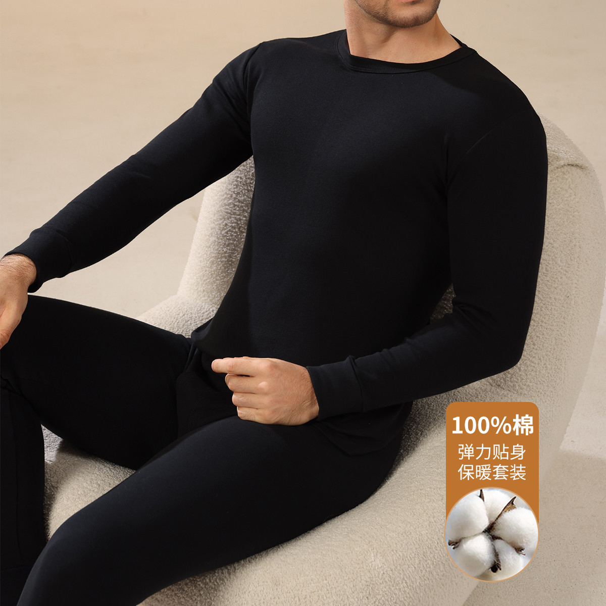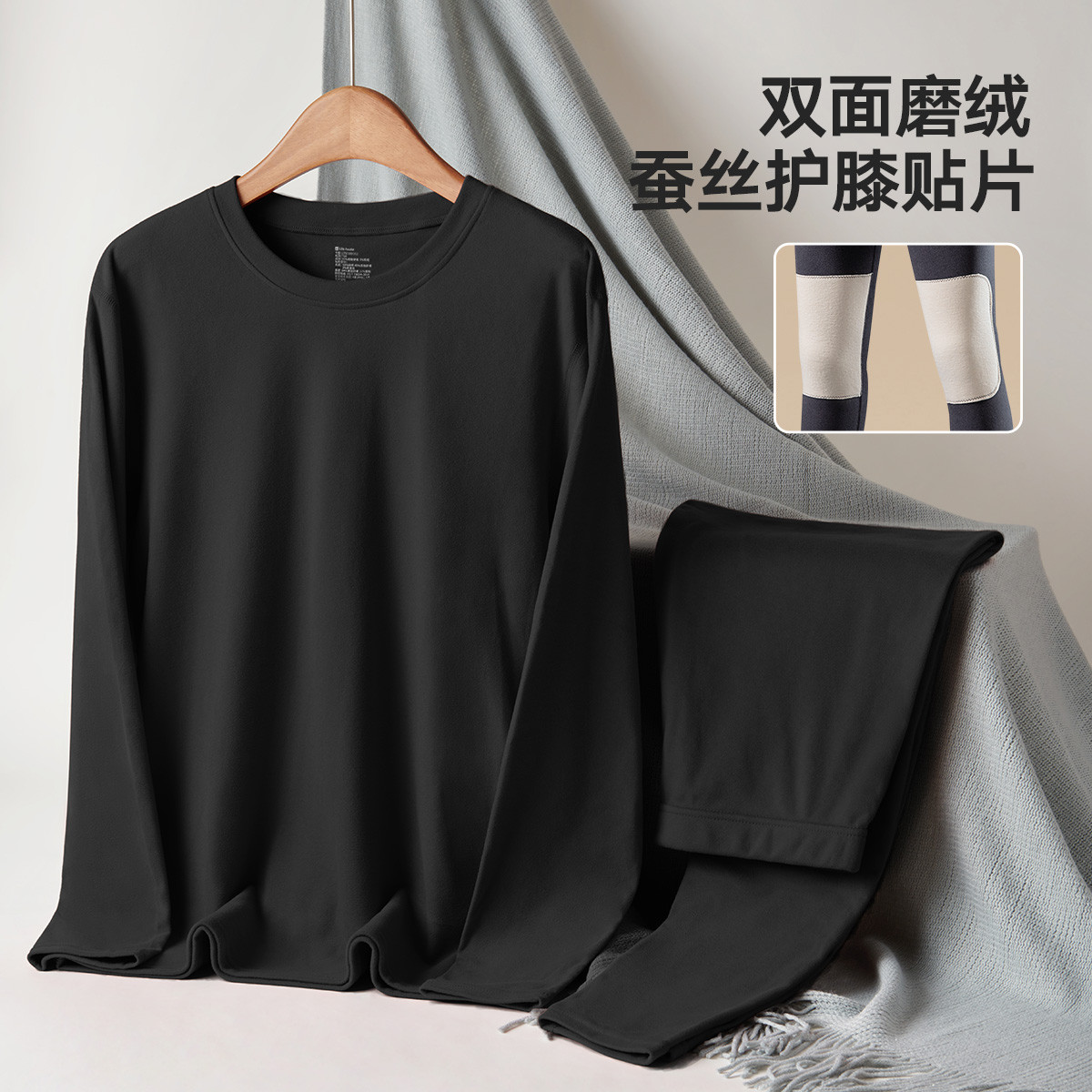【加厚双面磨绒 蚕丝贴片】秋冬男士圆领保暖内衣秋衣秋裤套装男 917082