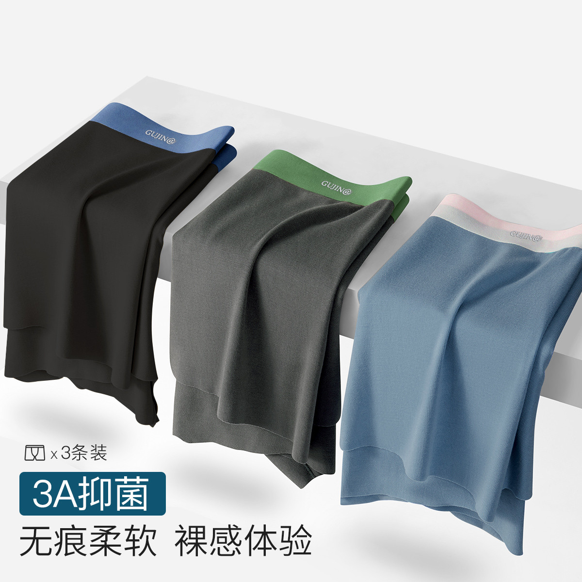 【3A抑菌 裸感无痕】3条装高弹撞色无痕抑菌透气男士内裤男 619678