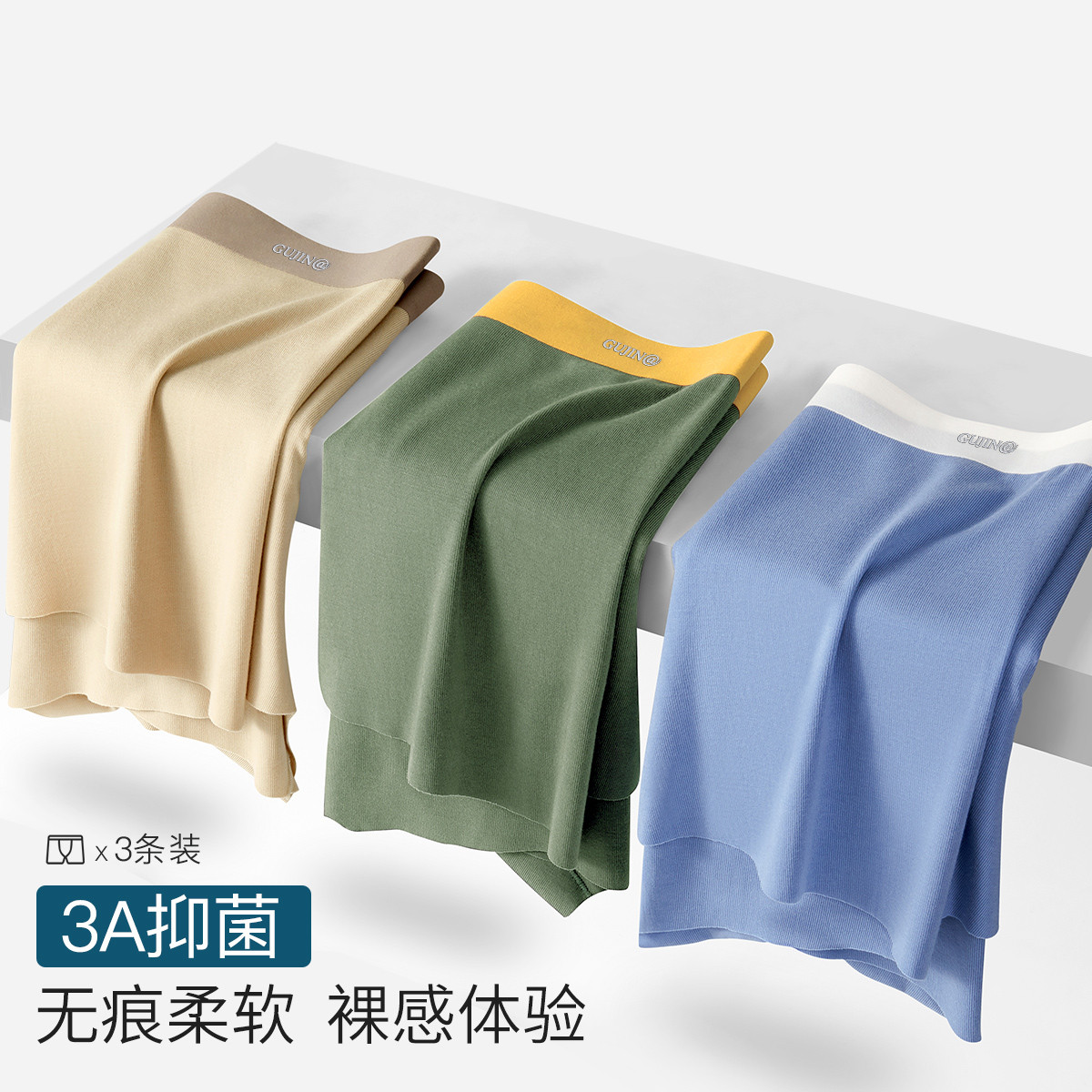 【3A抑菌 裸感无痕】3条装高弹撞色无痕抑菌透气男士内裤男 586910