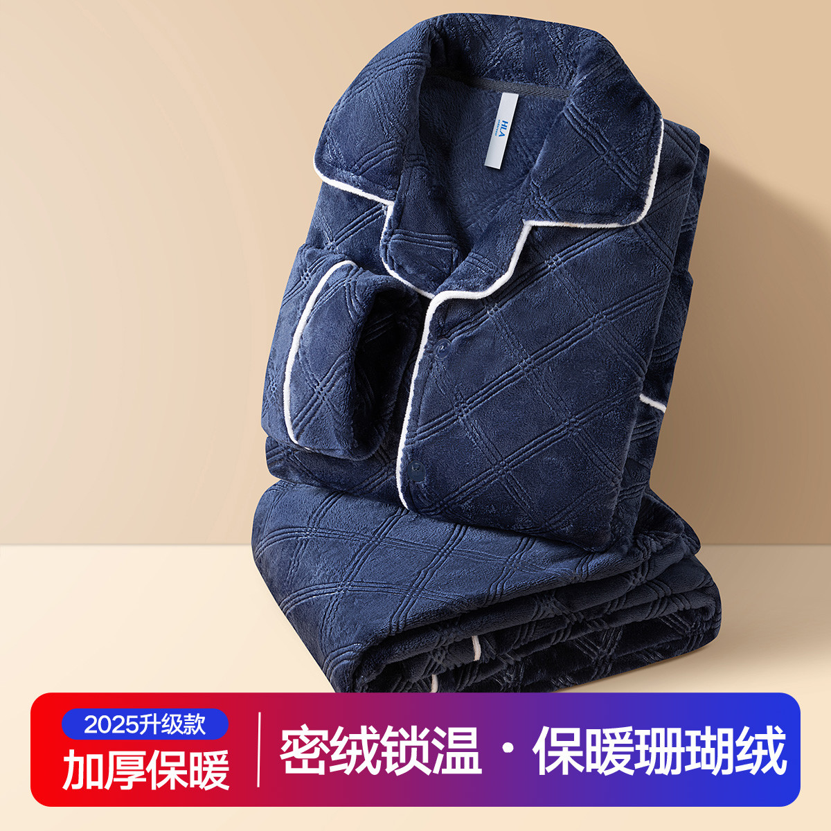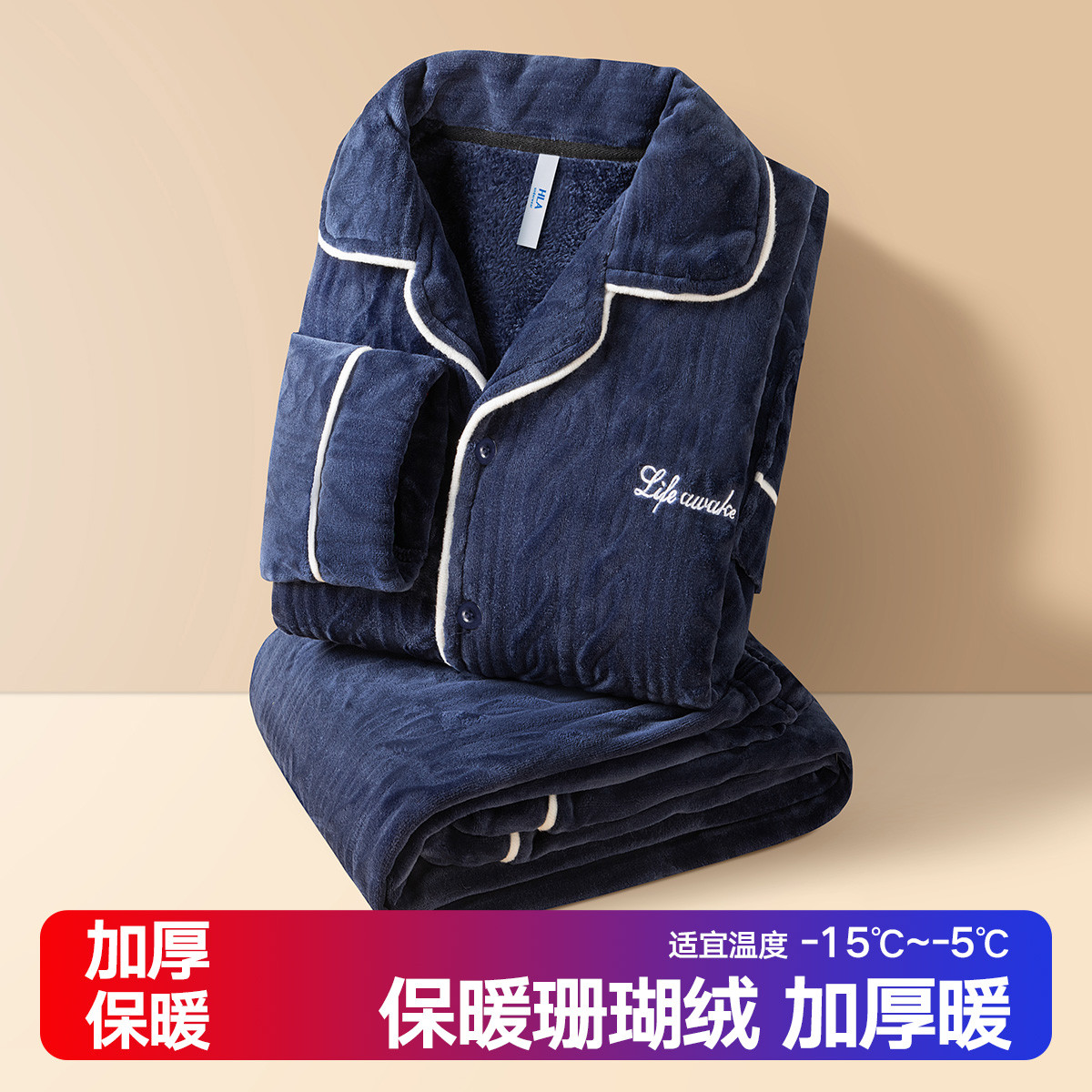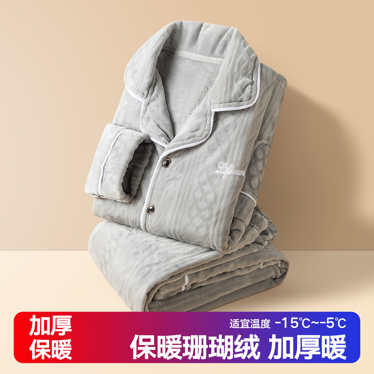 【加厚珊瑚绒】冬季加绒加厚可外穿翻领珊瑚绒男士睡衣男士家居服 879962