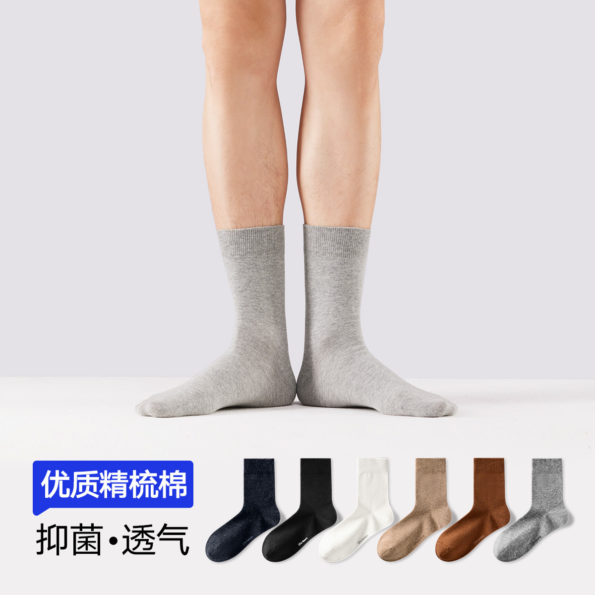 【5A抑菌】6双装男士袜子商务休闲中筒袜男款抗菌透气运动棉袜 101658