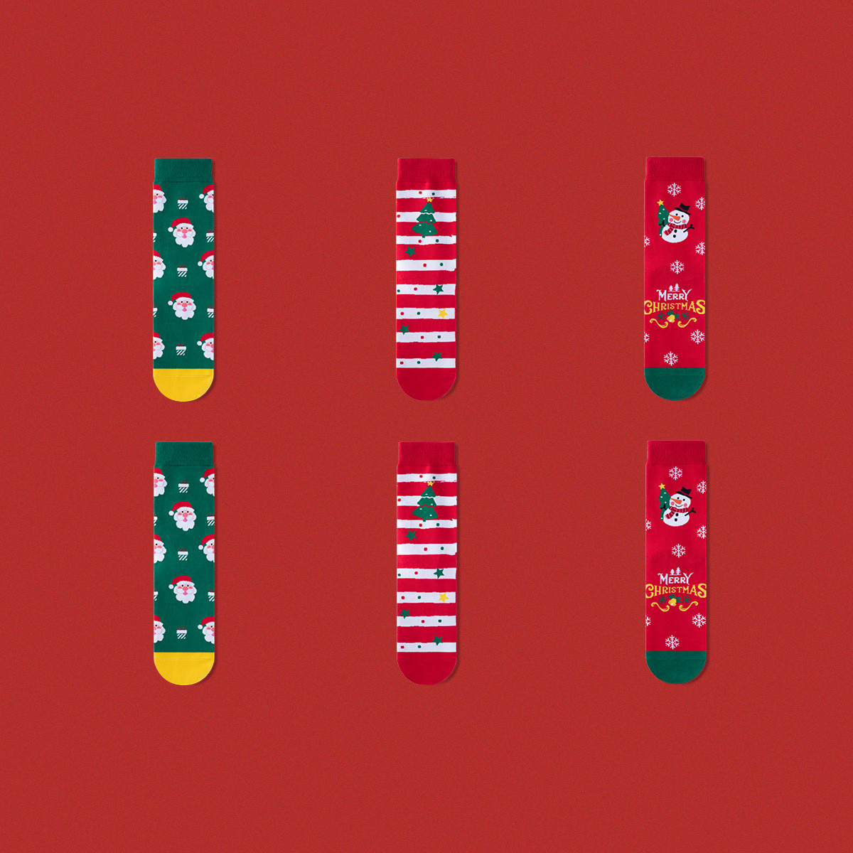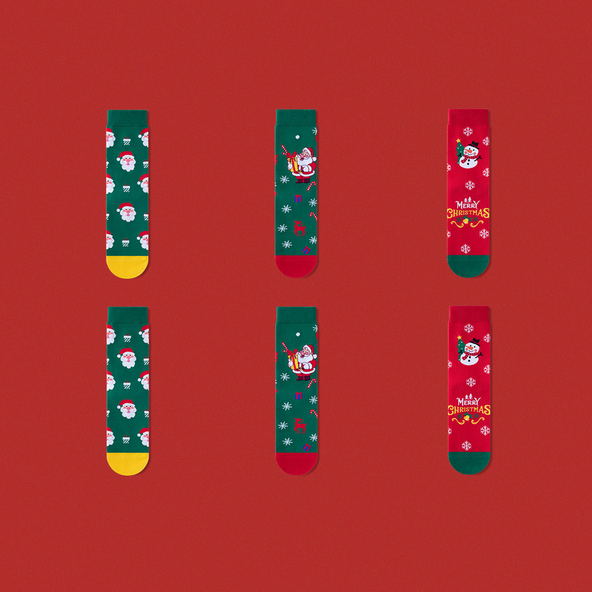 【5A抑菌圣诞袜】3双装秋冬男士袜子印花透气中筒袜可外穿棉袜 844250