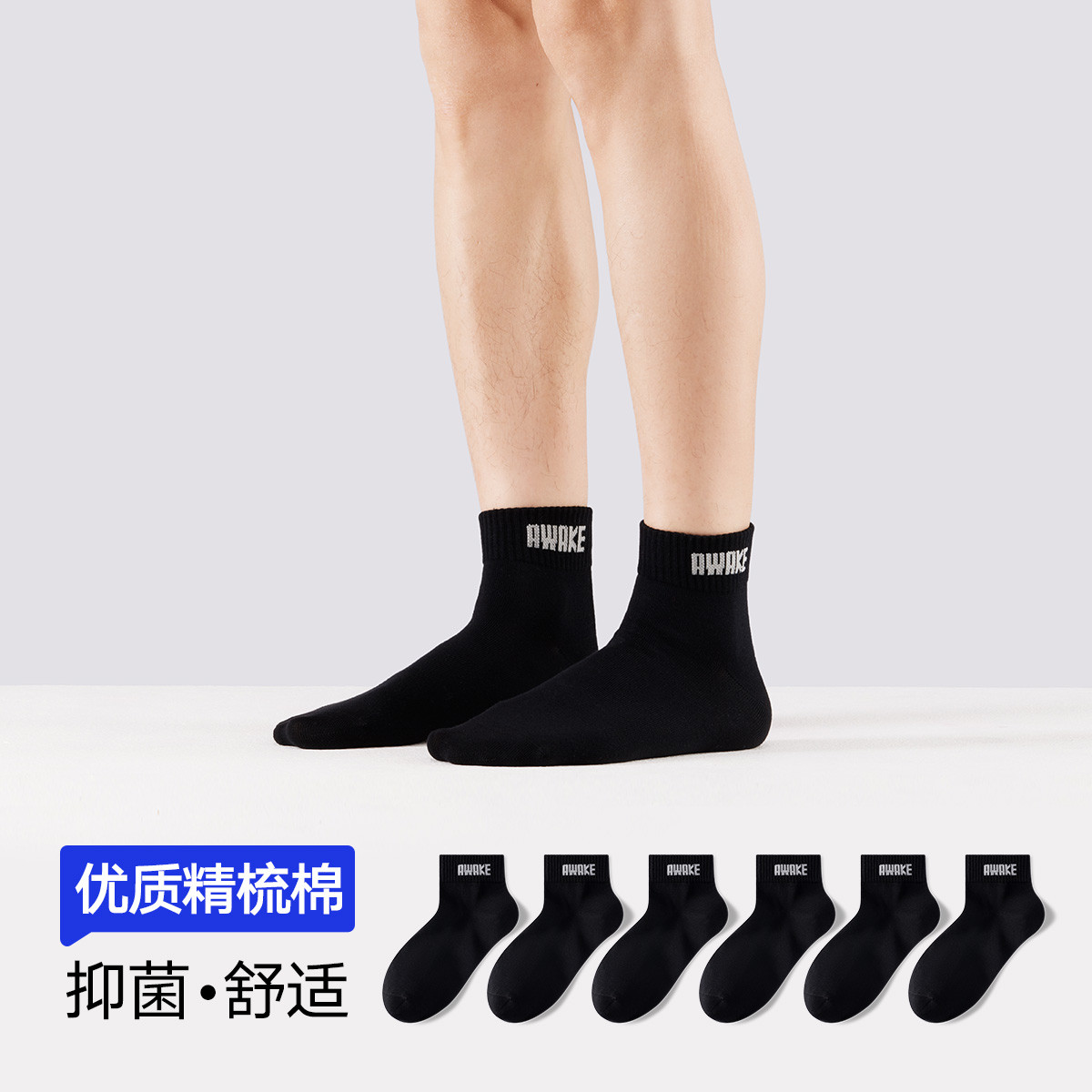 【5A抑菌 6双装】男士袜子防臭透气短袜抗起球棉袜休闲运动袜 713242