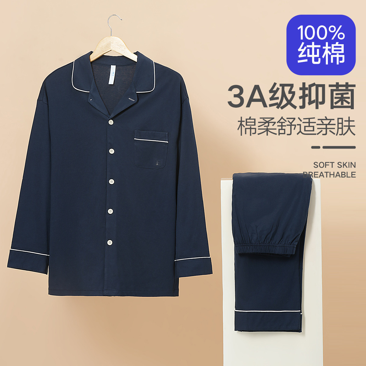 【100%纯棉抑菌】翻领睡衣男长袖家居服套装高级感男士可外穿 144986