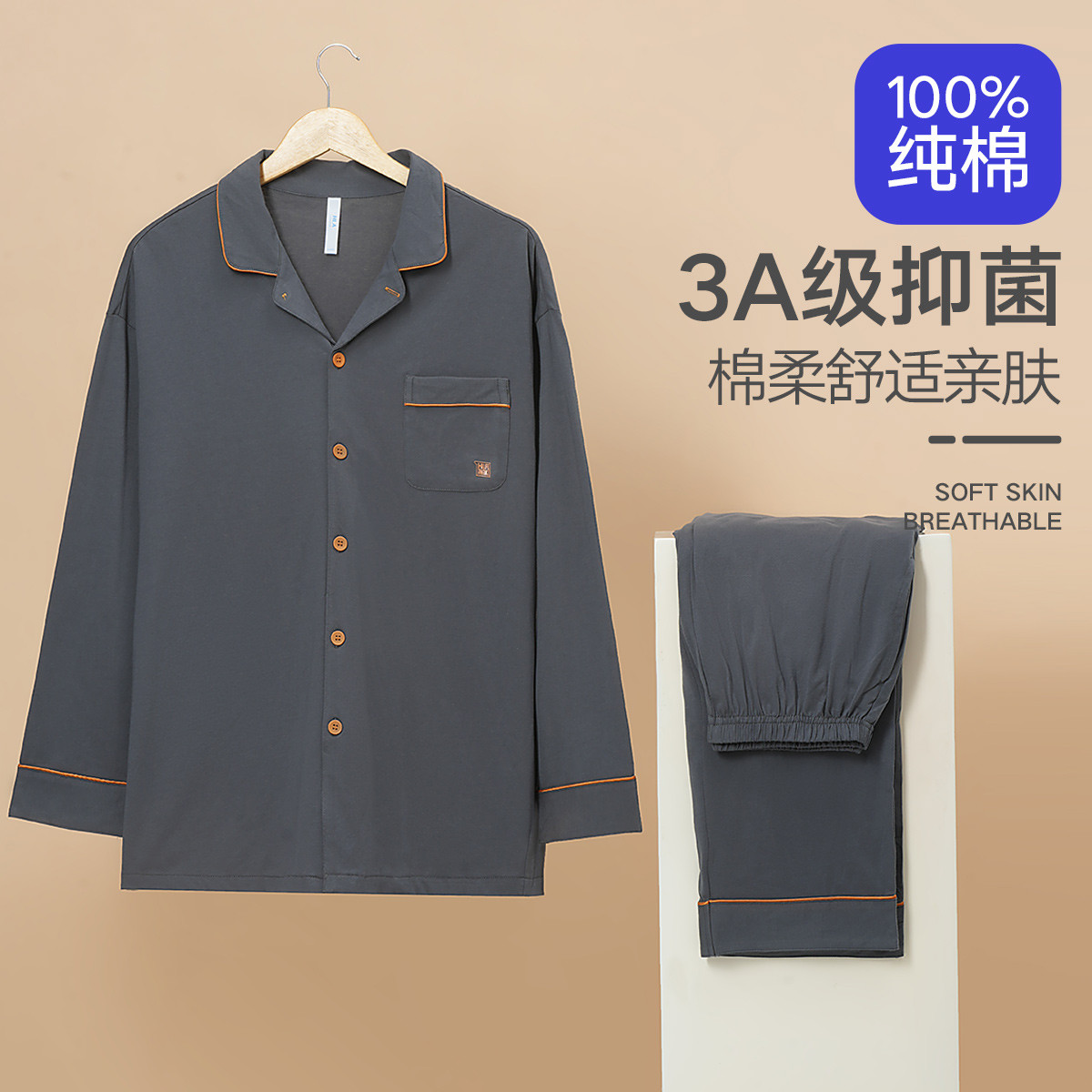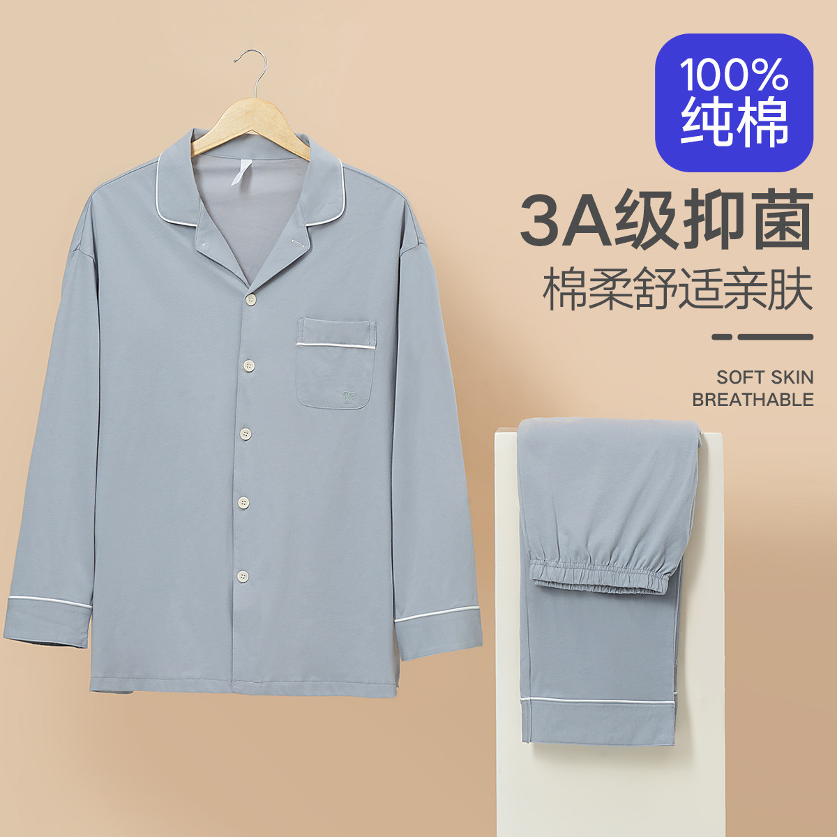 【100%纯棉抑菌】翻领睡衣男长袖家居服套装高级感男士可外穿 239194