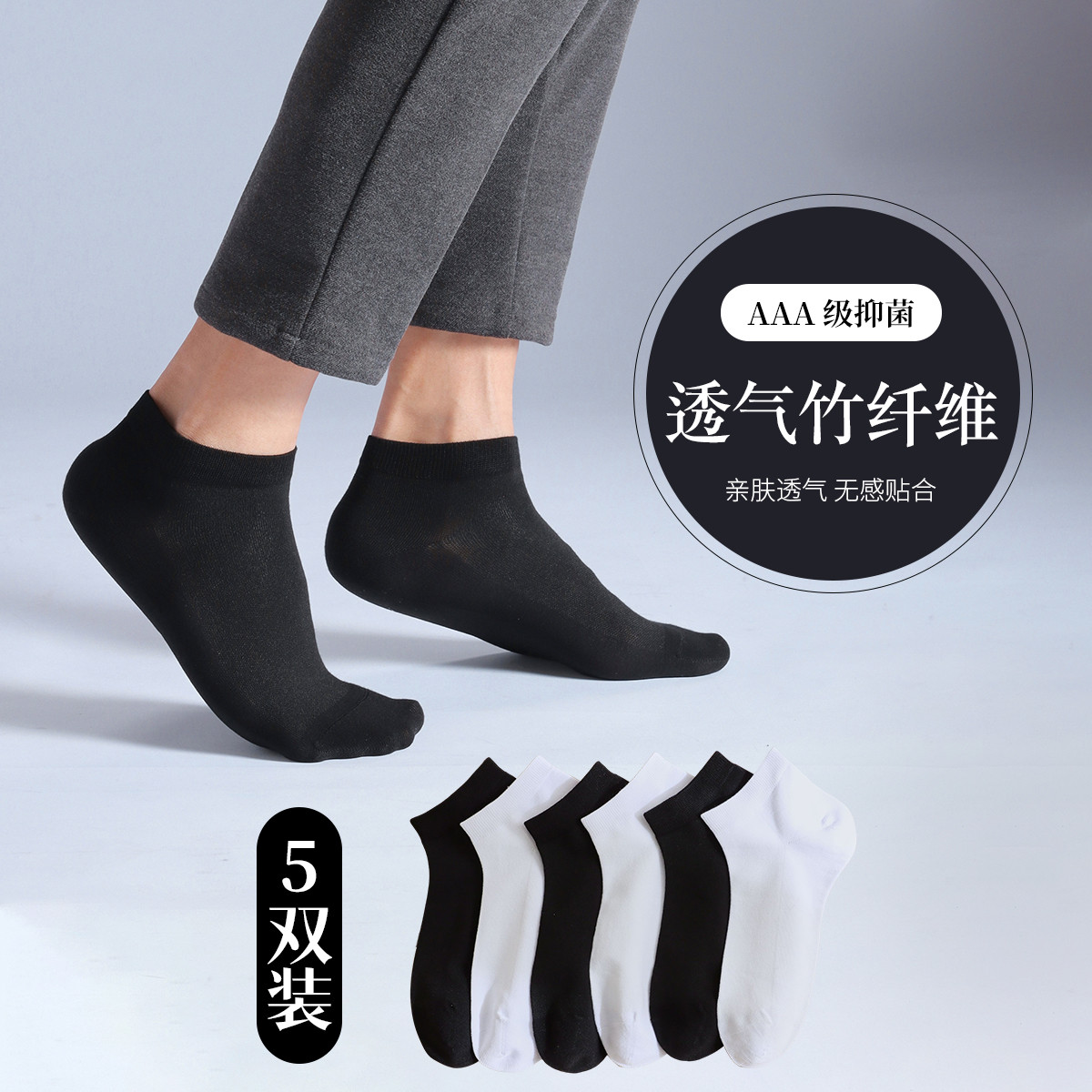 5双装【竹纤维透气】基础袜男士船袜短袜纯色休闲运动防臭袜子 882955