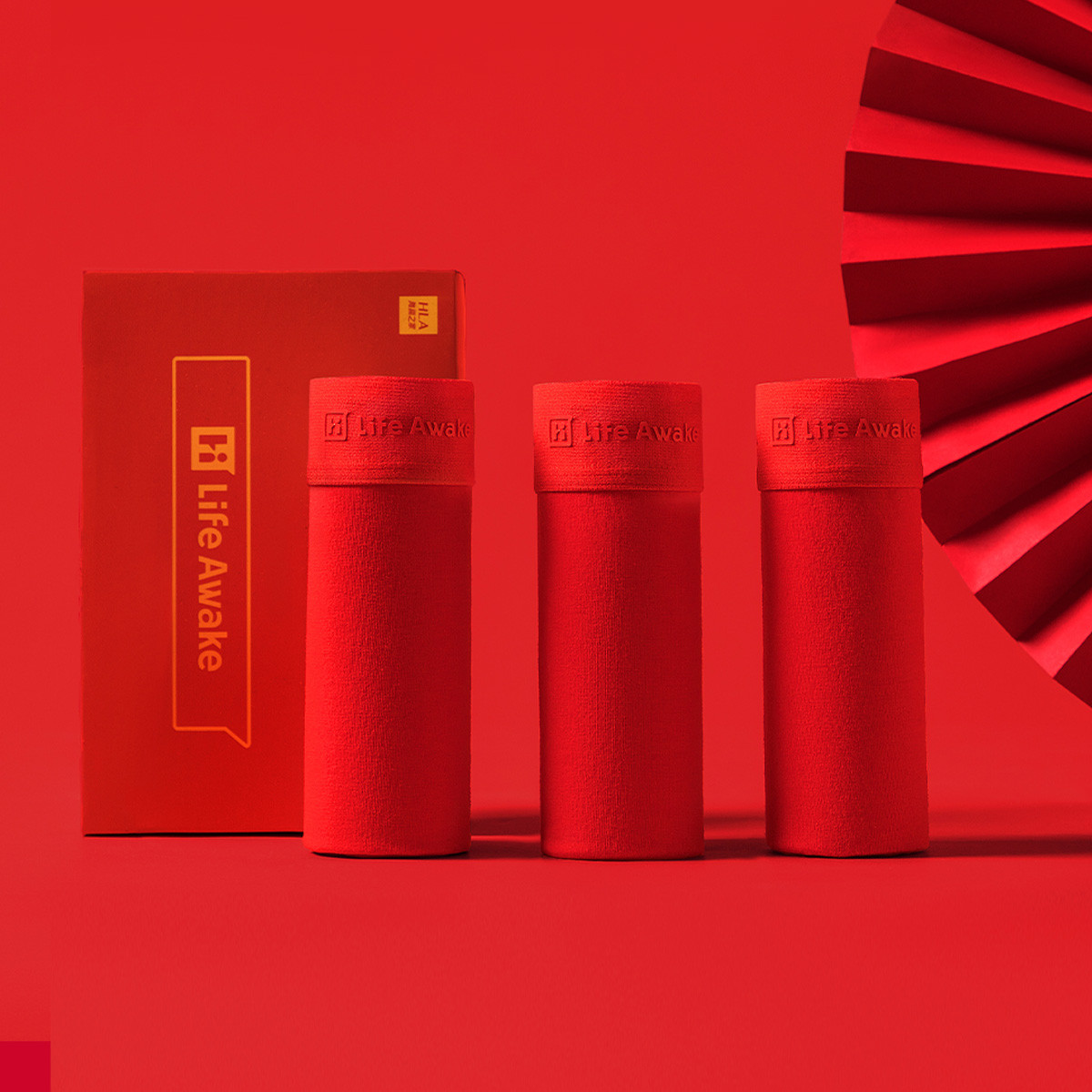 【95%棉】3条装男士平角内裤男本命蛇年红色喜庆抑菌四角短裤 735578