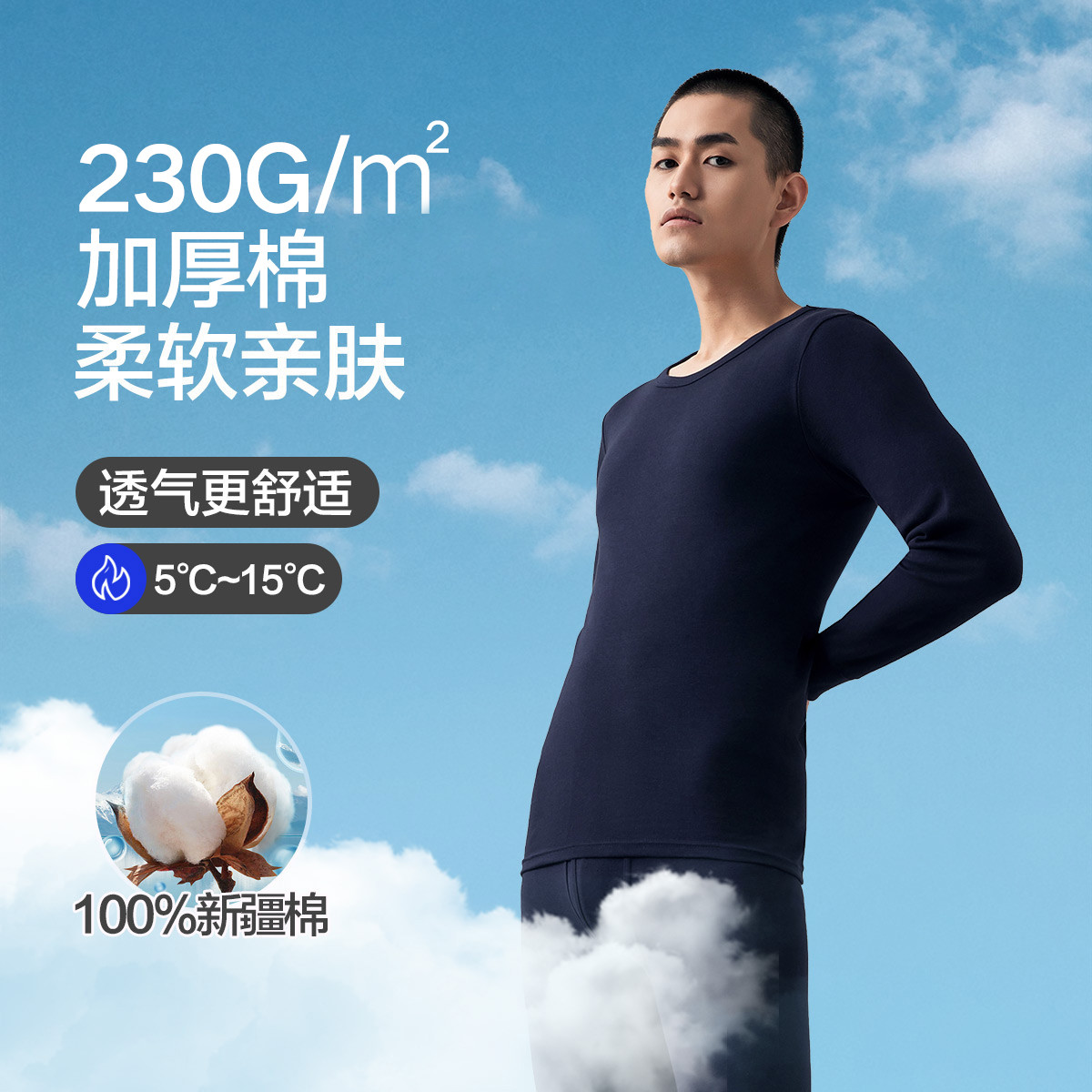 【舒柔全棉】纯棉男士秋衣秋裤男透气春秋季男士圆领保暖内衣套装 084506
