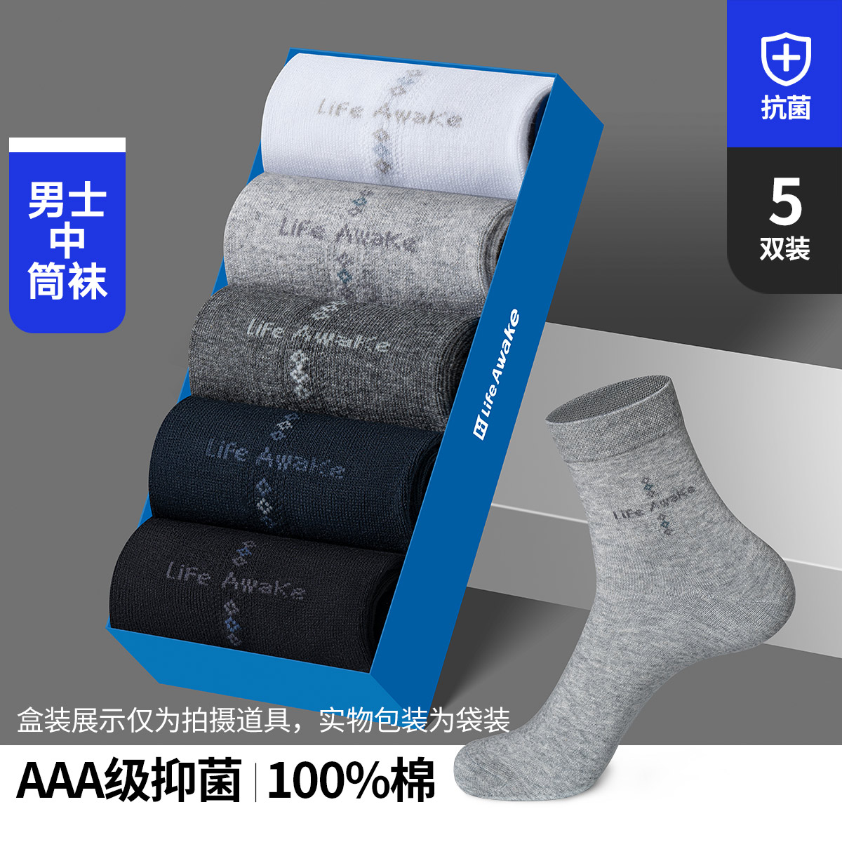 【100%纯棉抑菌】春秋季5双装男士袜子中筒商务休闲棉袜男款 593050