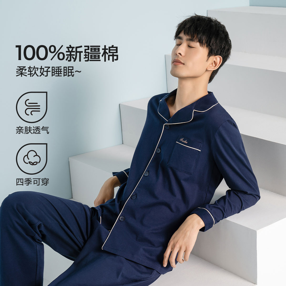 【100%新疆棉】纯棉男士睡衣套装春秋高级感休闲家居服男长袖 897114