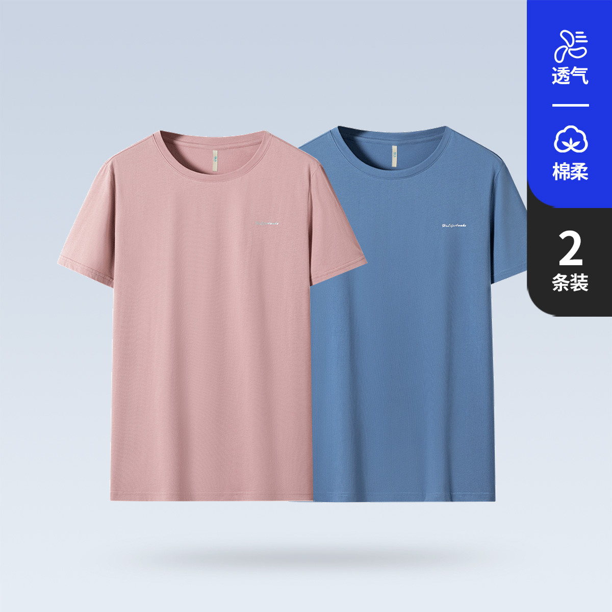 【100%纯棉】2件装男士短袖T恤男高端全棉白色打底体恤汗衫 121306