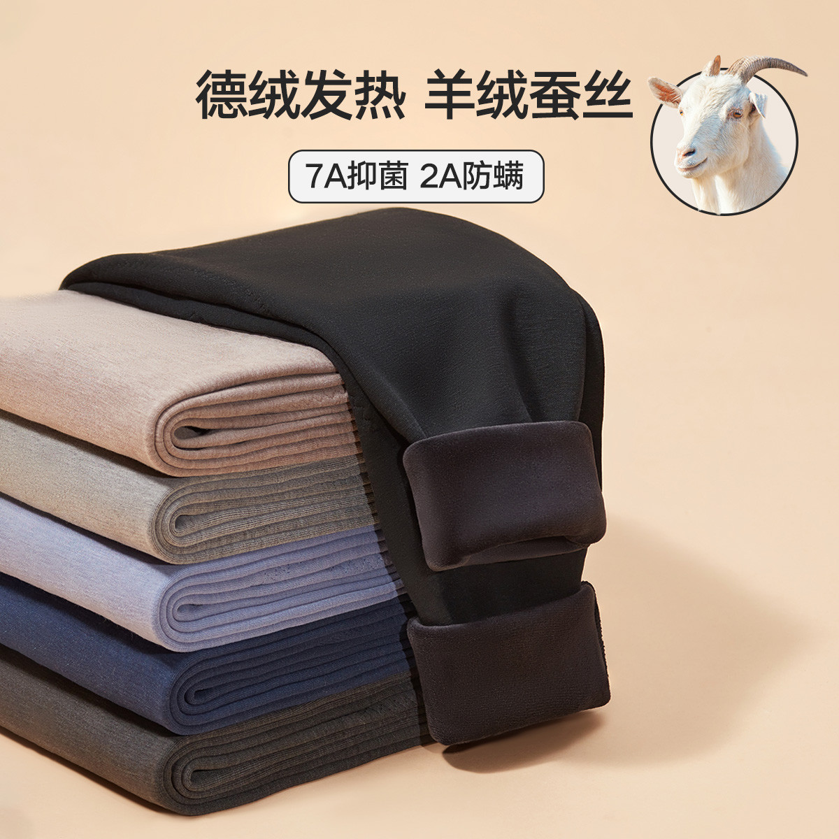 【德绒发热 含羊绒蚕丝】秋冬男士秋裤加绒加厚打底保暖裤男单件 808538