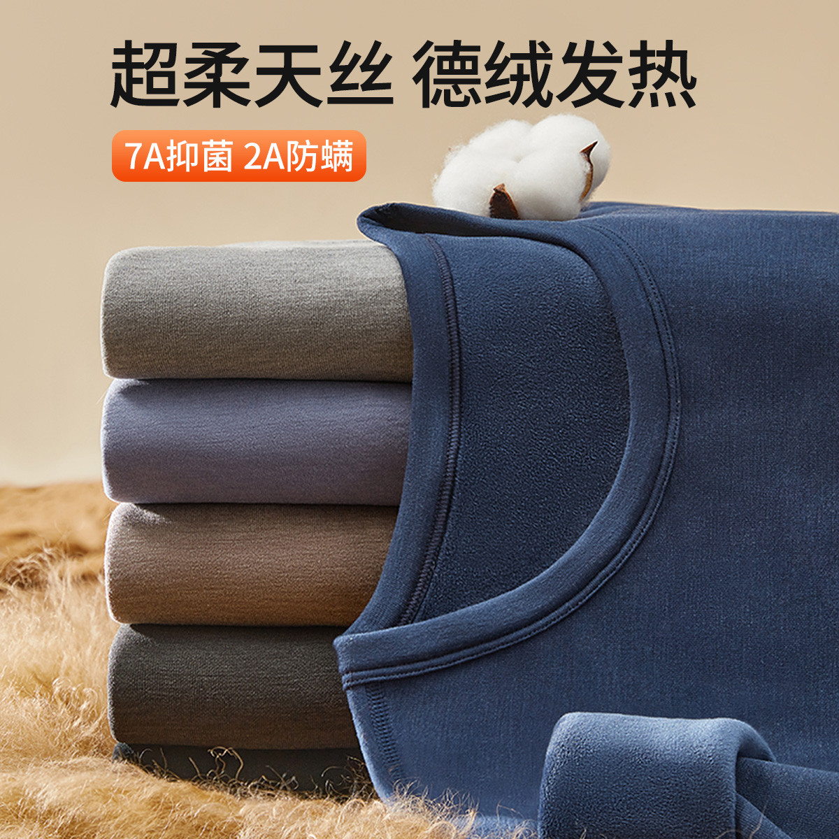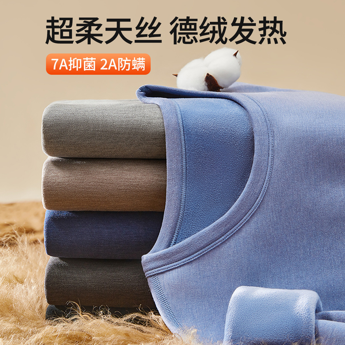 【德绒发热 含羊绒蚕丝】男士秋衣单件秋冬加绒加厚打底保暖内衣 685658