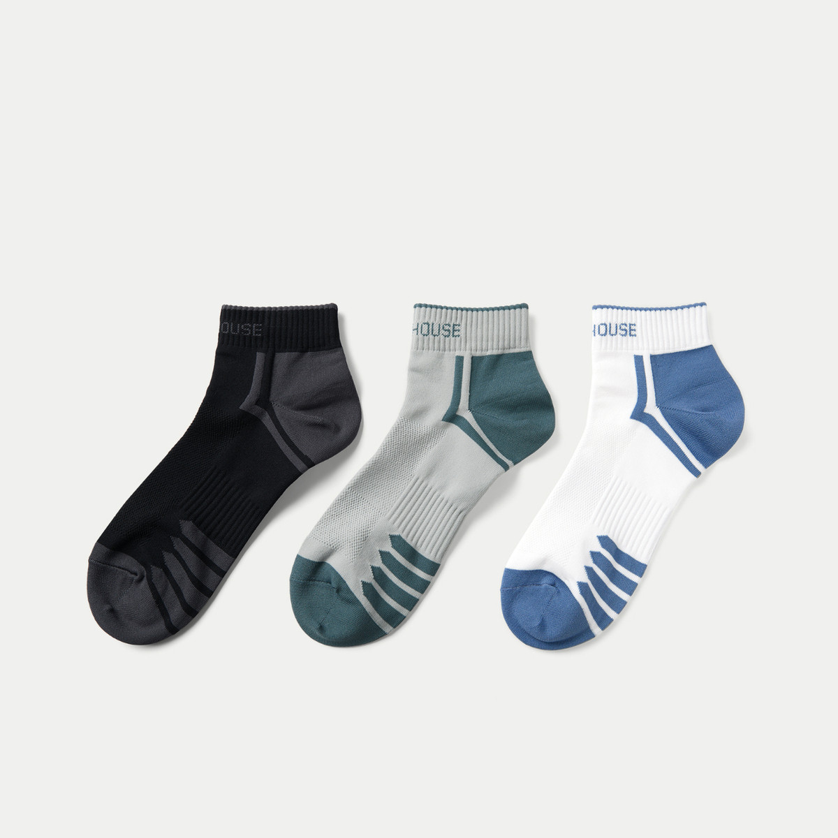 【三双装】2025运动透气舒爽柔软细腻时尚镶拼男士船袜 381960