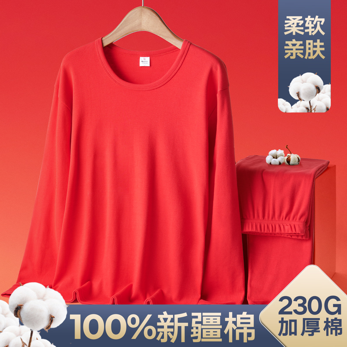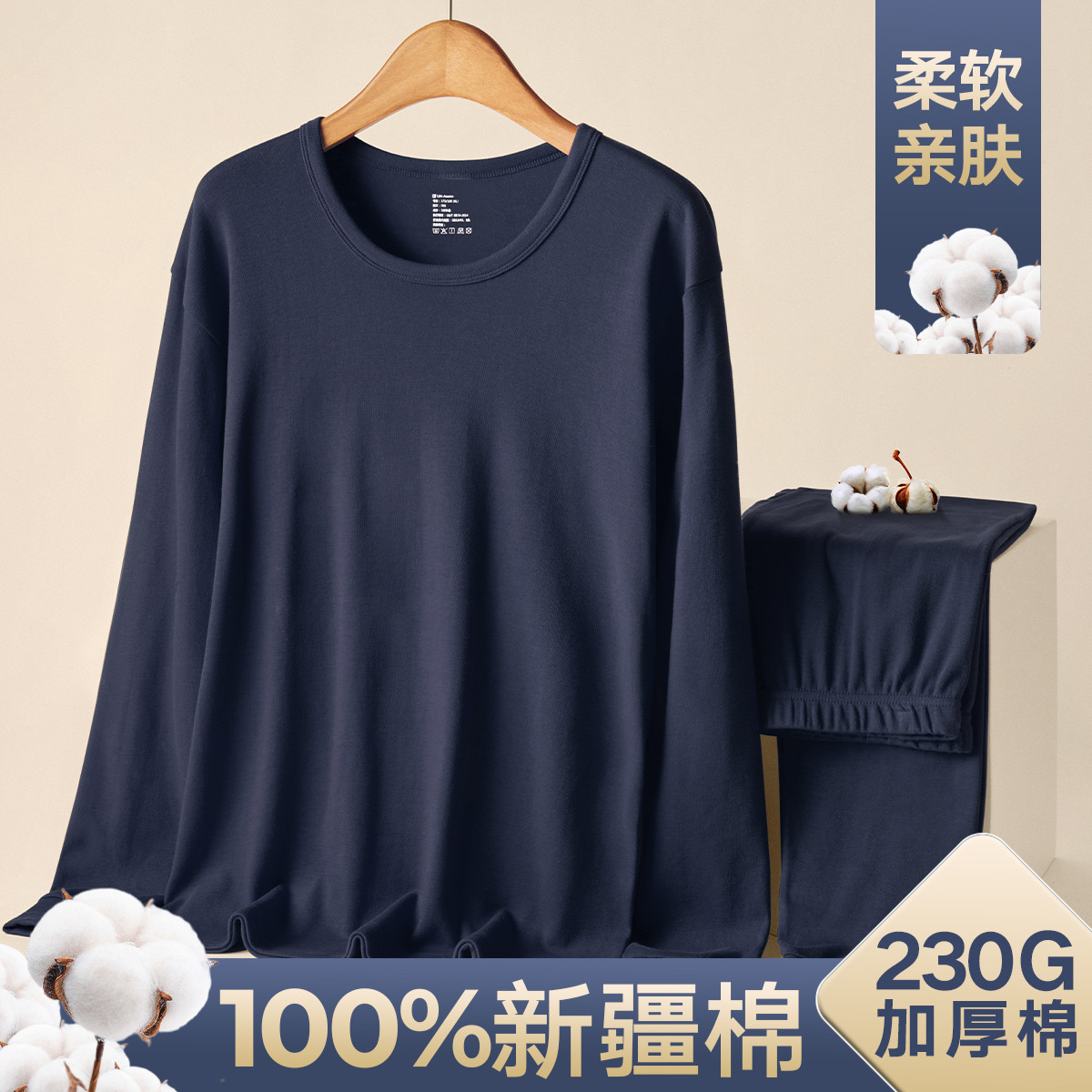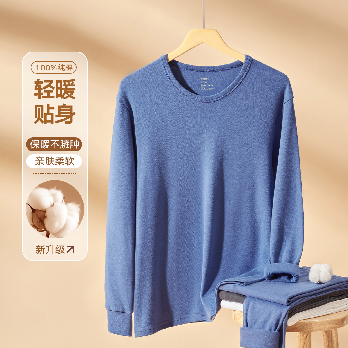 【100%纯棉】秋冬男士圆领保暖内衣套装打底棉毛衫秋衣秋裤男 839386