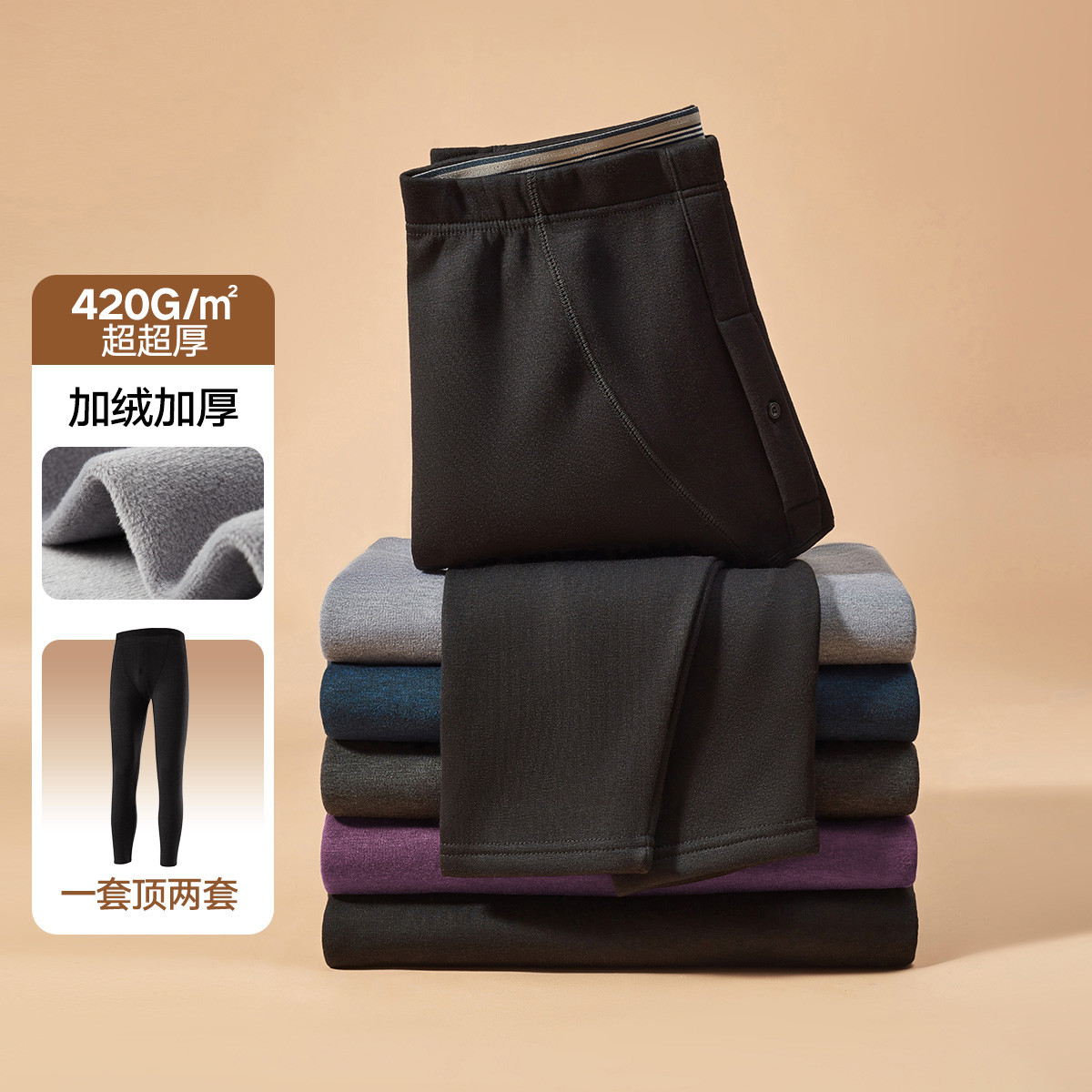 【750g加绒加厚】含羊毛秋冬季男士保暖裤东北高腰打底秋裤男 802458