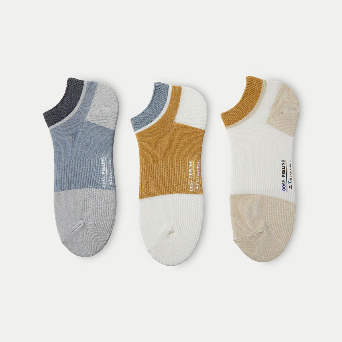 【三双装】2025耐穿抗起球透气舒爽柔软时尚镶拼男士船袜 859592