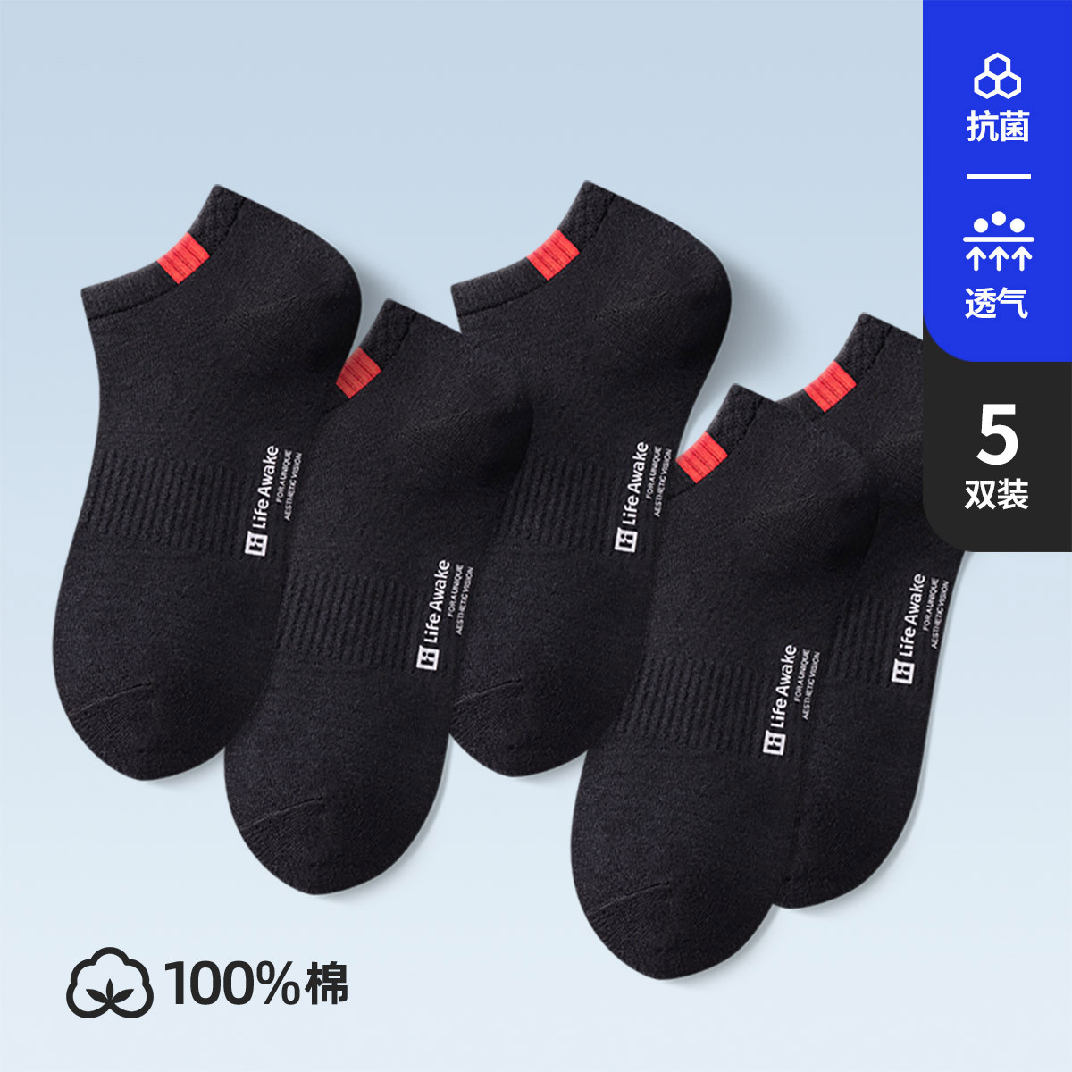 【100%纯棉】5双装男士短袜抑菌船袜夏季薄款透气运动袜子男 015834