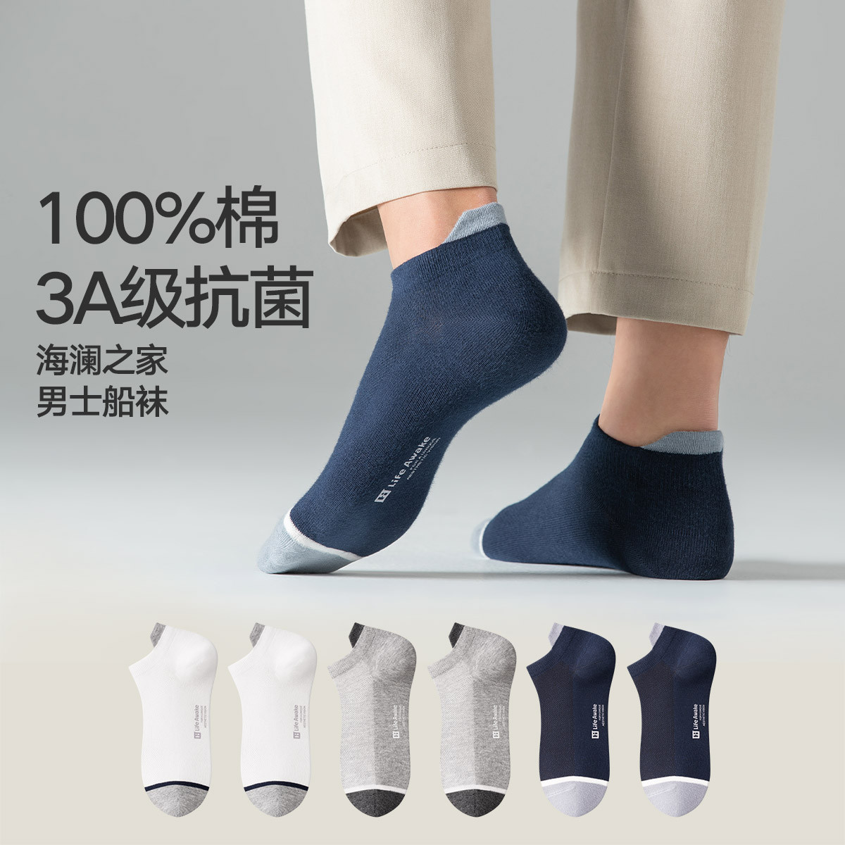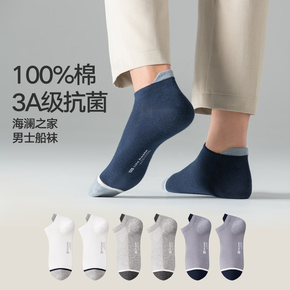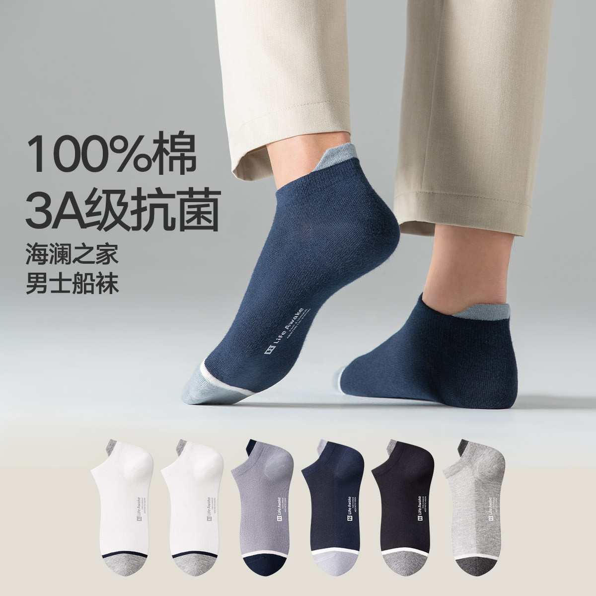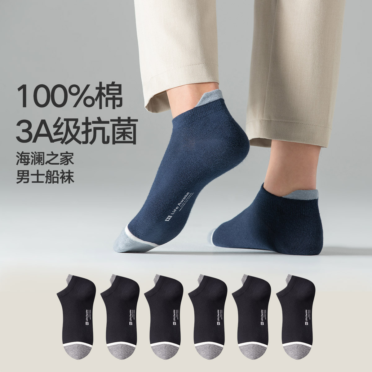 【100%纯棉】6双装男士袜子男船袜夏季薄款透气抑菌运动短袜 384090