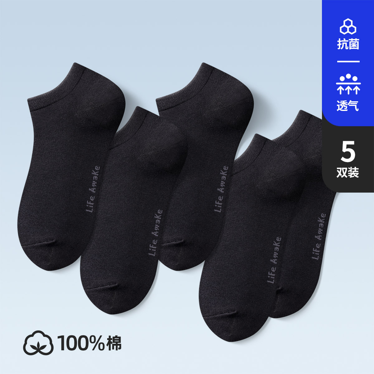 【100%纯棉】5双装男士袜子抑菌防臭透气运动船袜男短筒棉袜 688666