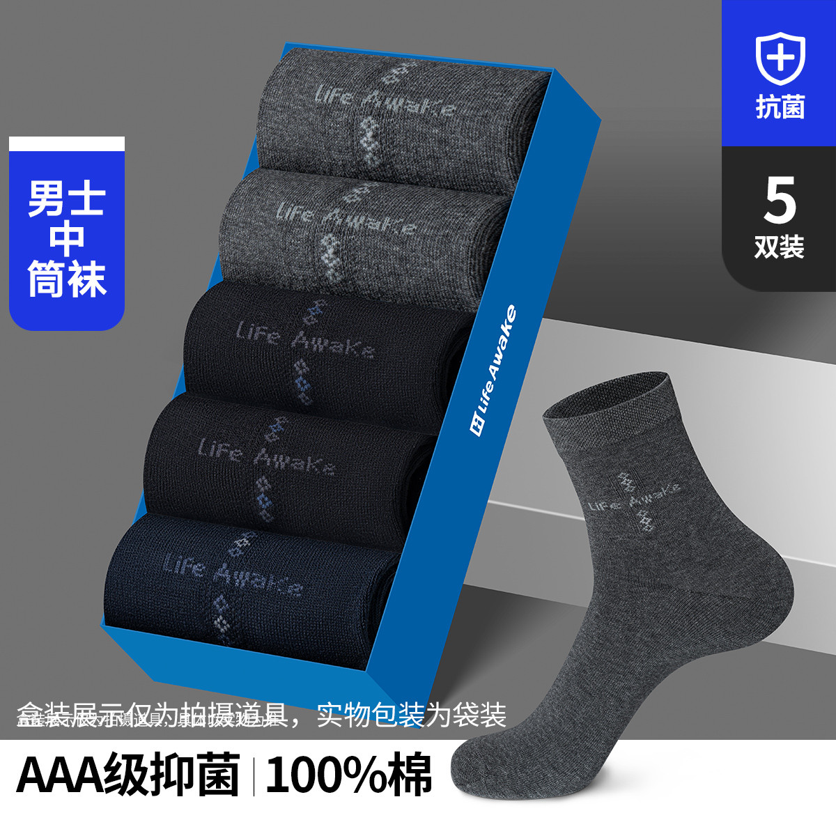 【100%纯棉抑菌】春秋季5双装男士袜子中筒商务休闲棉袜男款 246618