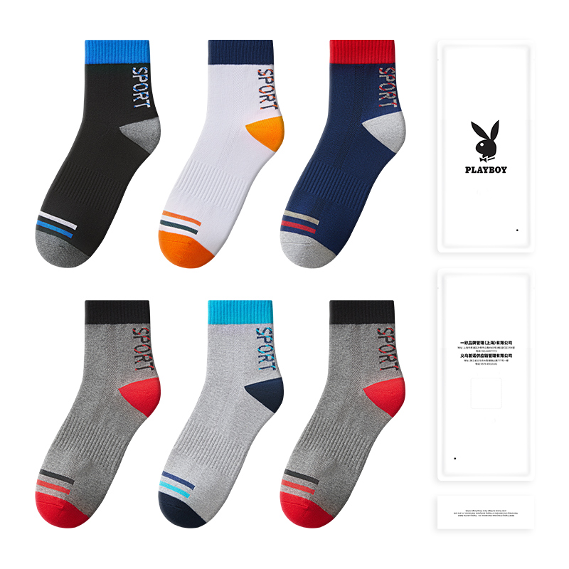花花公子5双装男士袜子纯棉抗菌防臭柔软透气男袜中筒男生袜子