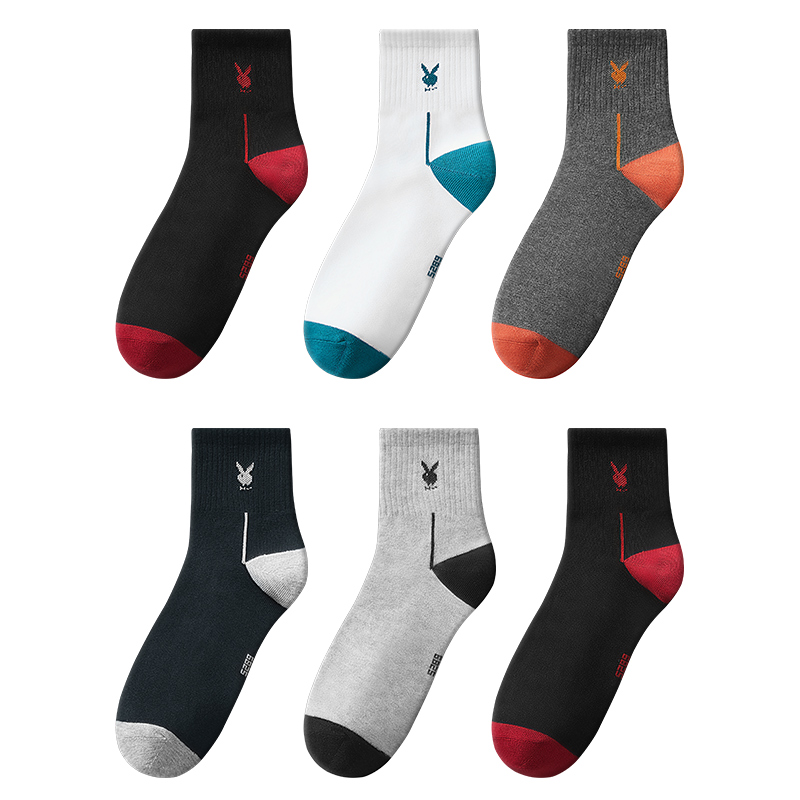 花花公子6双男士袜子男纯棉中筒防臭吸汗春秋抗菌全棉男式长袜棉袜