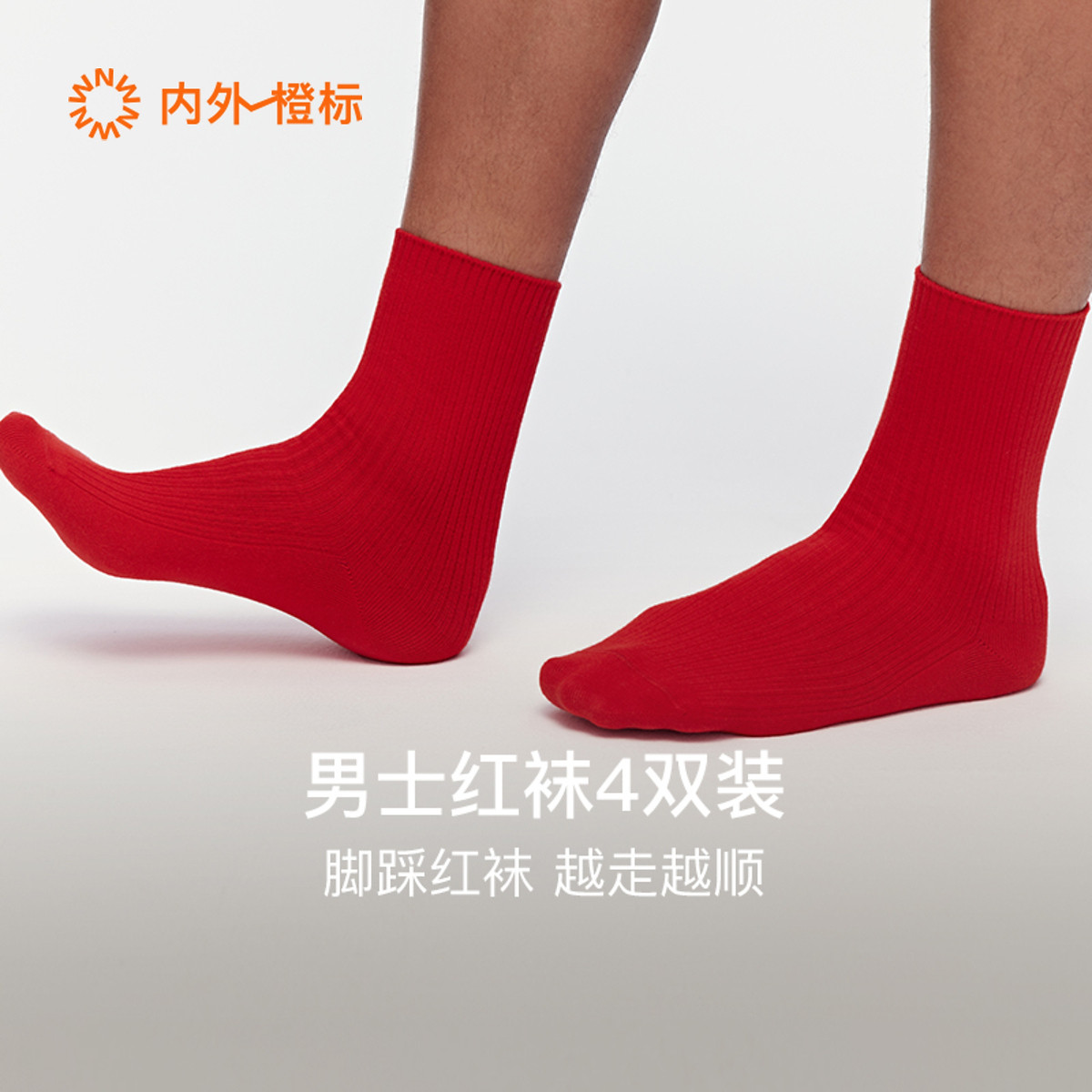 NEIWAI内外红品 | 男士中/短筒红袜4双装男袜节日礼物 855114