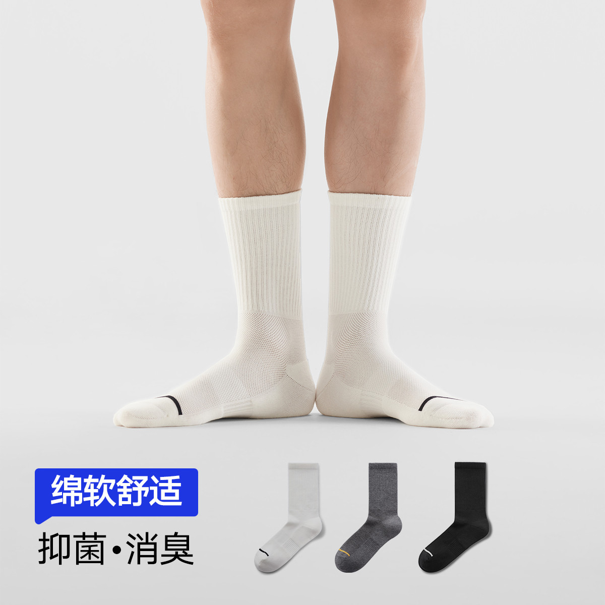 【5A抑菌防臭】3双装男士袜子男休闲运动棉袜薄款透气中筒长袜 059098