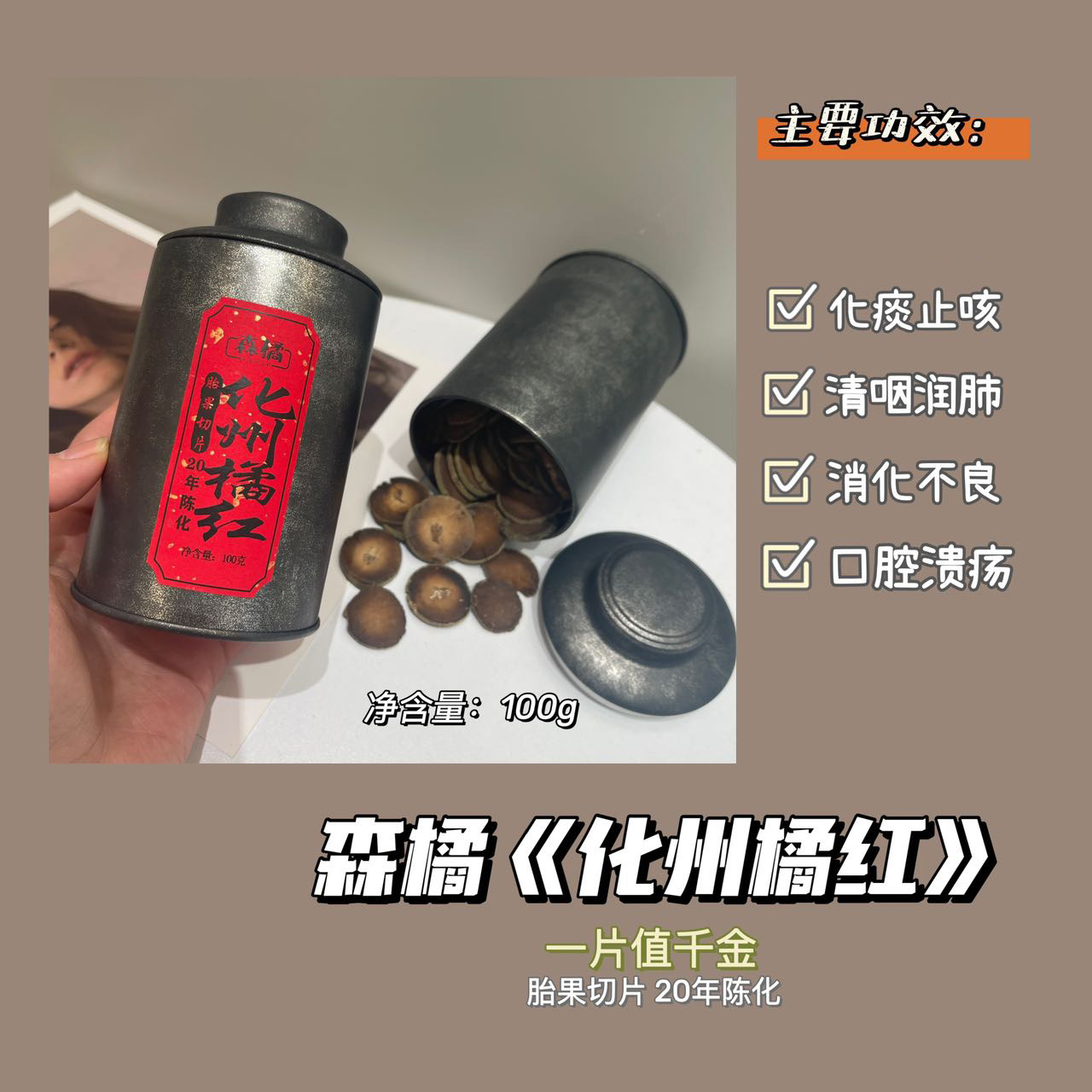 【广东三宝之一,“南方人参”化橘红,20年陈化】森橘化州橘红 化痰止咳平喘 (规格:100g/瓶