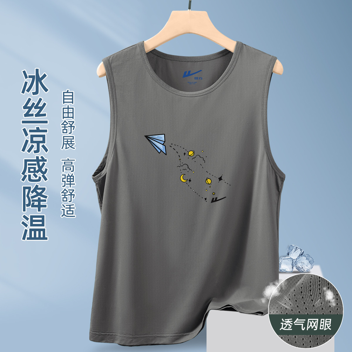 【冰爽透气】男士运动背心薄款夏季冰丝网眼健身上衣宽松潮牌坎肩 032403