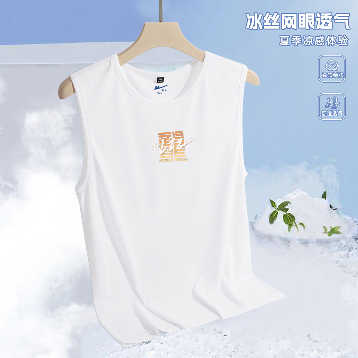 【冰爽透气】冰丝网眼运动背心男美式潮牌凉感跨栏健身无袖t恤 853971