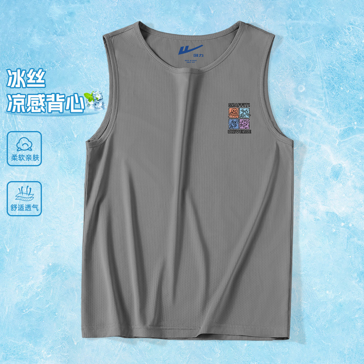 【冰爽透气】冰丝网眼运动背心男美式潮牌凉感跨栏健身无袖t恤 989139