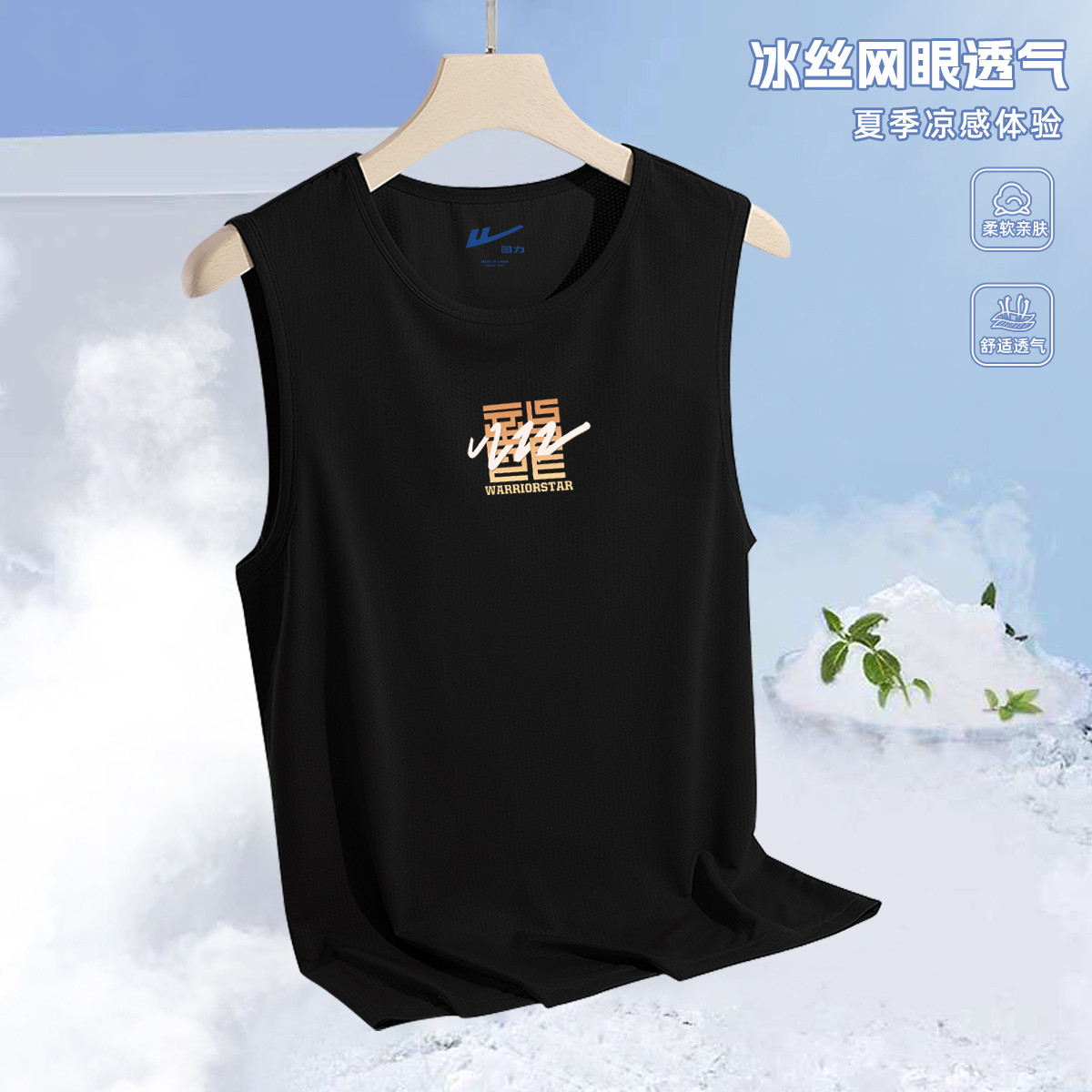 【爽滑透气】冰丝背心男国潮风简约潮牌外穿跑步篮球无袖运动坎肩 876051