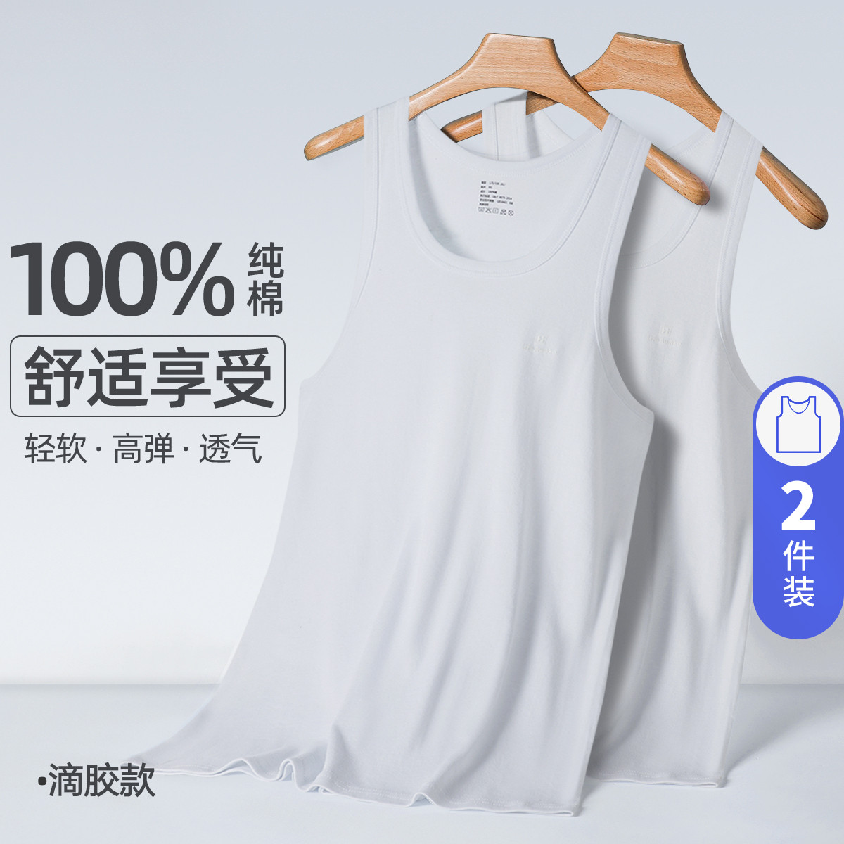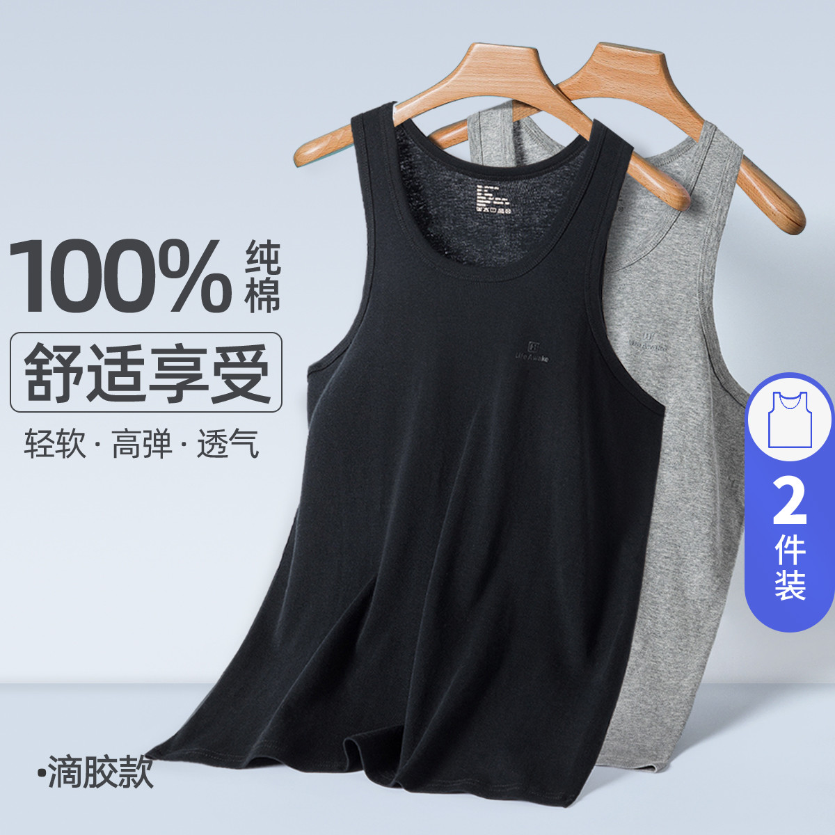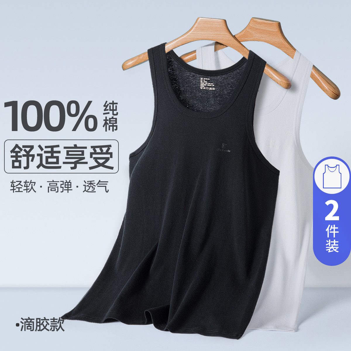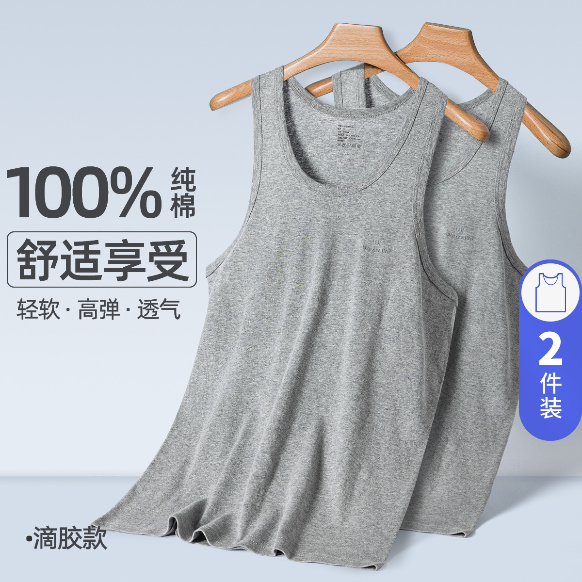 【100%纯棉】2件装全棉男士背心内穿跨栏运动打底衫无袖汗衫 300826