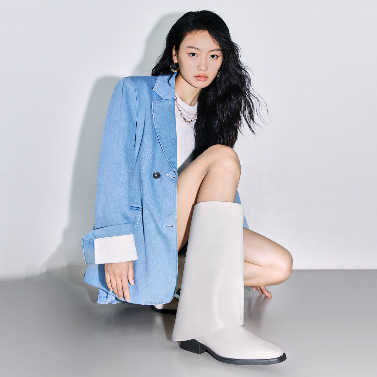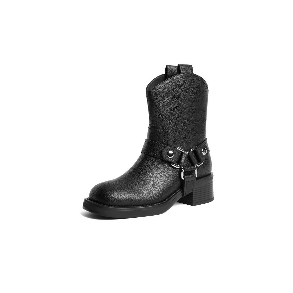 百丽复古工装靴女靴靴子短筒靴美拉德西部靴女款冬季保暖 049562