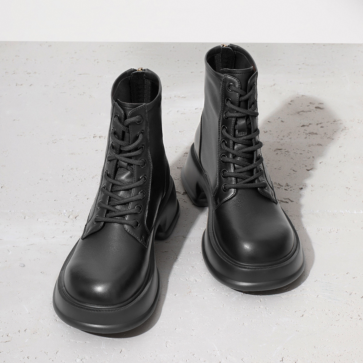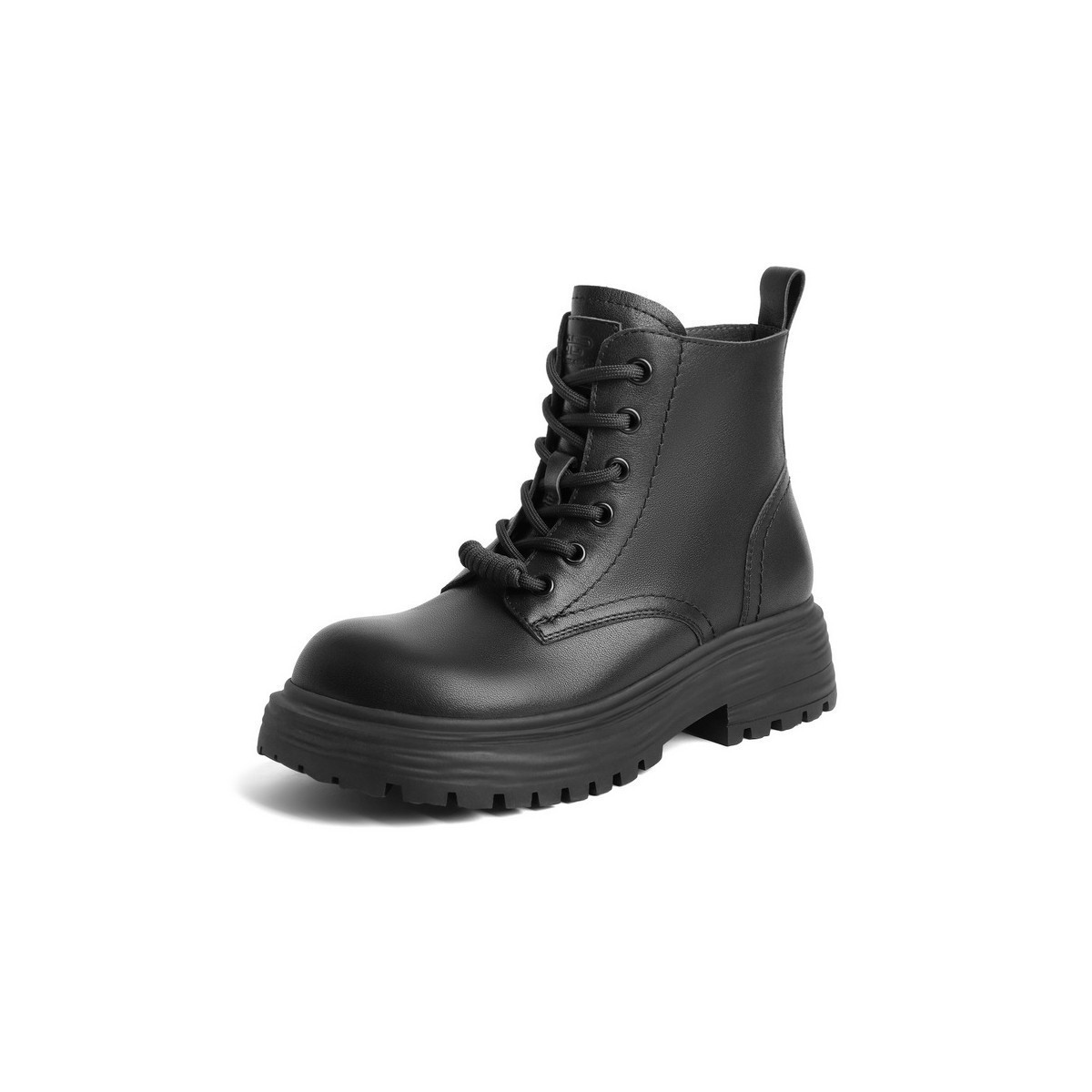 百丽女鞋子复古黑色马丁靴女款冬季短靴 863322